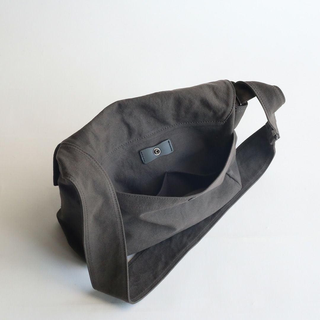 帆布のお色は、木(アーミーブラウン)が燃え(レッド)、炭(スモーク)となり灰(グレージュ)になるという、木炭がつくられるストーリーを表現しました。その引き込まれそうな色合いの魅力にきっと沼るはず。