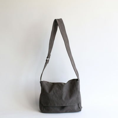 備長炭染めとは、固くて良質な白炭であるウバメガシを原料に作られる紀州備長炭を細かな粉状にして染色した生地です。染色職人により丁寧に染め上げられ、他の帆布製品では味わえない備長炭特有の深みのある色合いと個性的な表情が見られます。