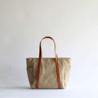 バイオウォッシュ加工を施すことで、ふんわりやわらかな肌あたりに仕上げた8号帆布の小ぶりでかわいいミニトート。帆布の風合いにマッチするヌメ革の持ち手が良いアクセントになっており、使うほどに味わいと愛着が増していきます。ちょっとそこまでのお買い物やカフェへのお出かけ、お仕事のサブバッグとしても便利なサイズ感です。ナチュラルで温かみのある雰囲気がコーディネートを引き立てます。