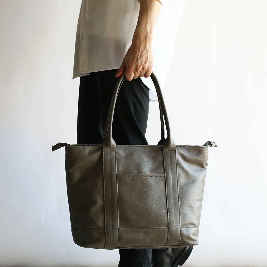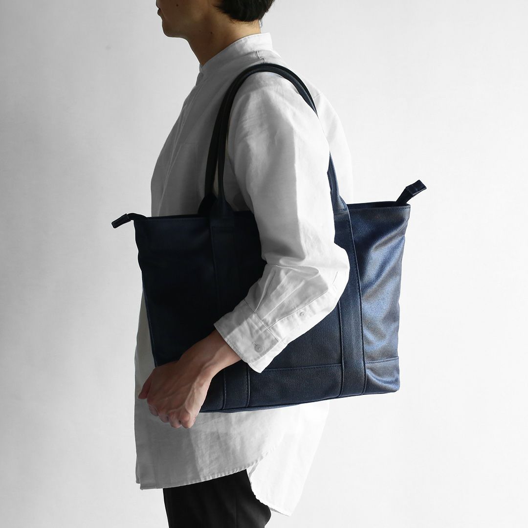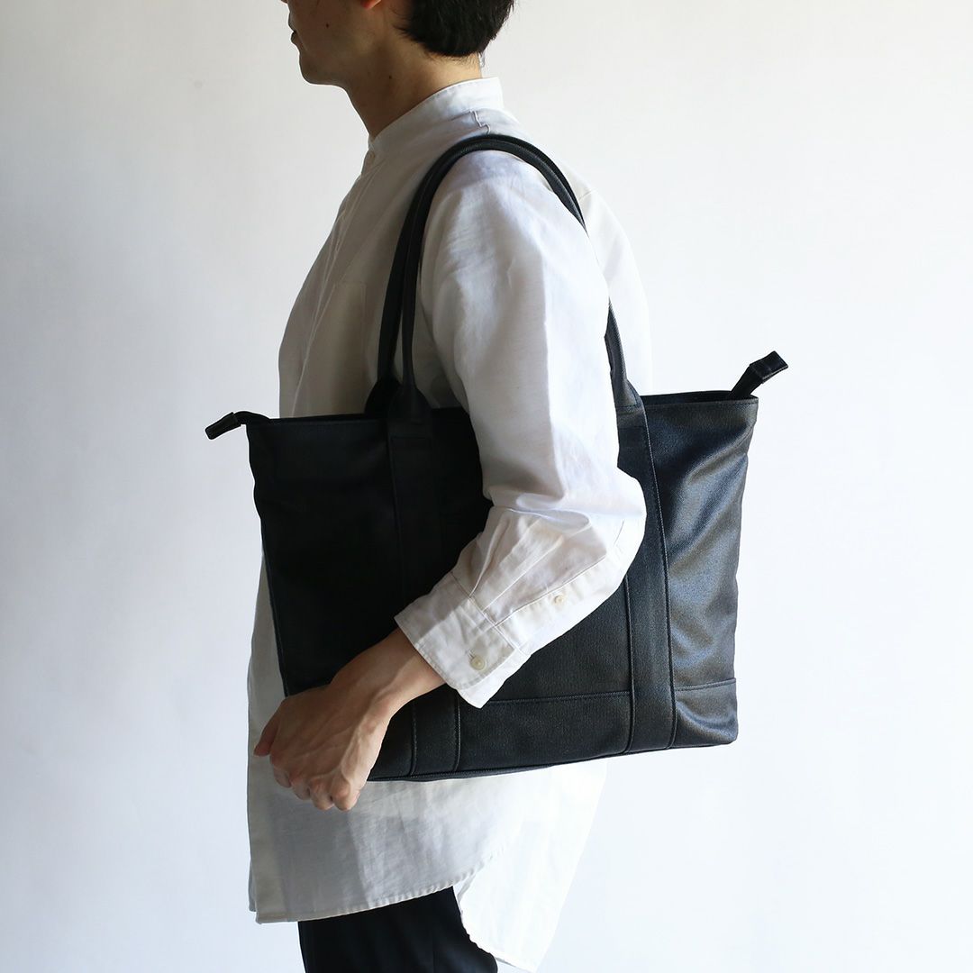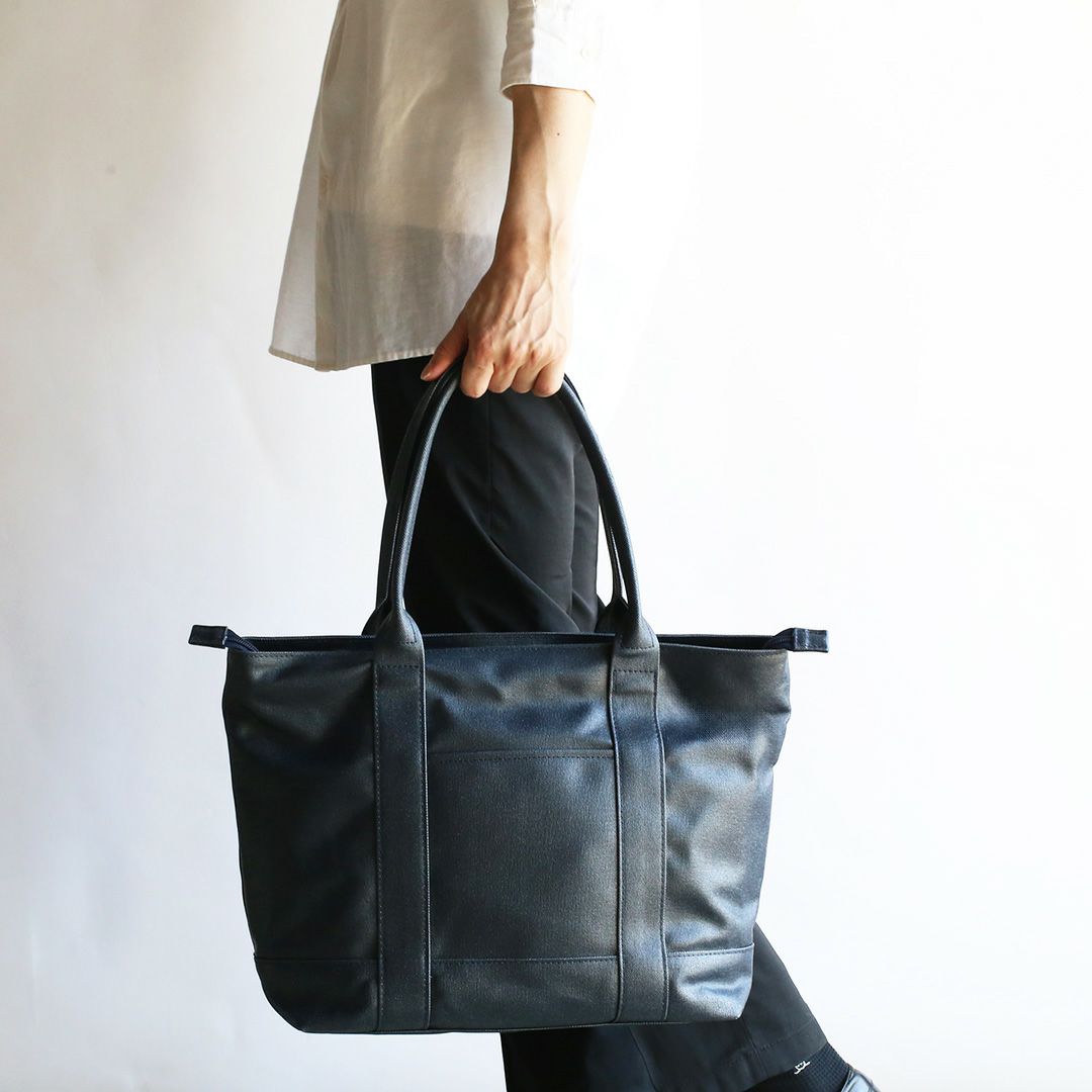 トートバッグの持ち手は、カバン職人と開発担当者が芯の厚みや握り具合など何度も繰り返し試作を行い、持ち運びに最適なバランスに仕上げています。 しなやかでありつつ、バッグのバランスを崩さない自立性の高いハンドルは、使うほどに手や肩に馴染んでくれます。