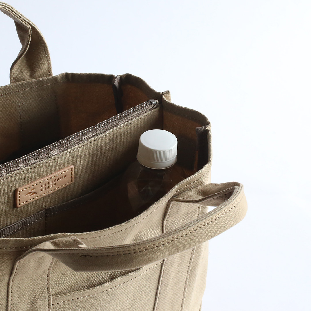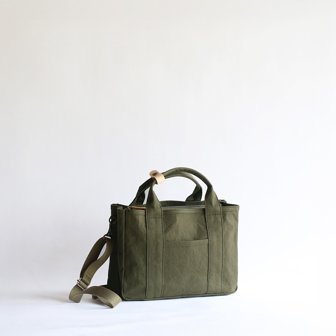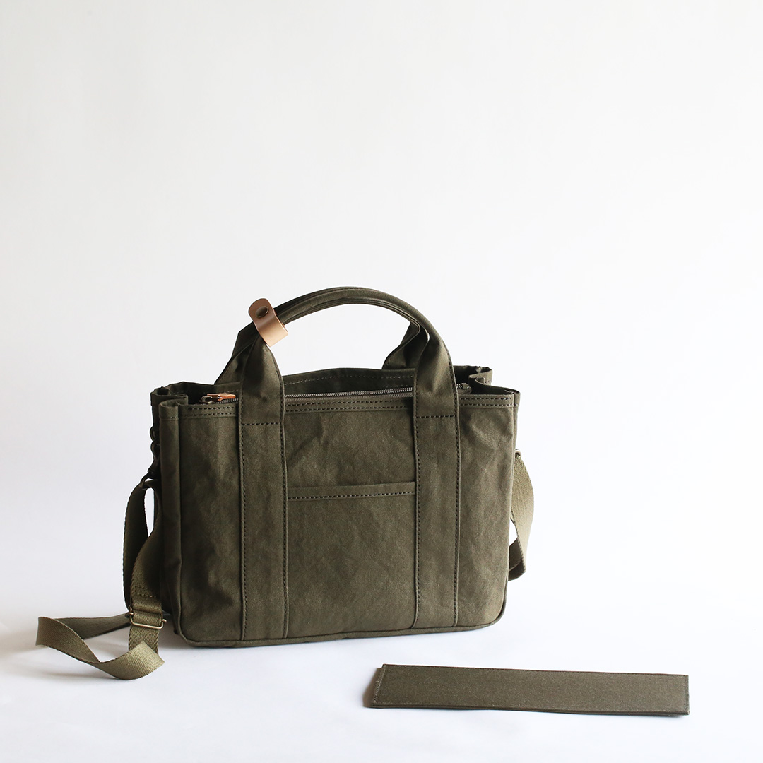 軽くて丈夫なパラフィン帆布で作った2WAYトートバッグです。ここにコレがこうあったらいいよね!という便利さをぎゅっと詰め込んで設計しました。