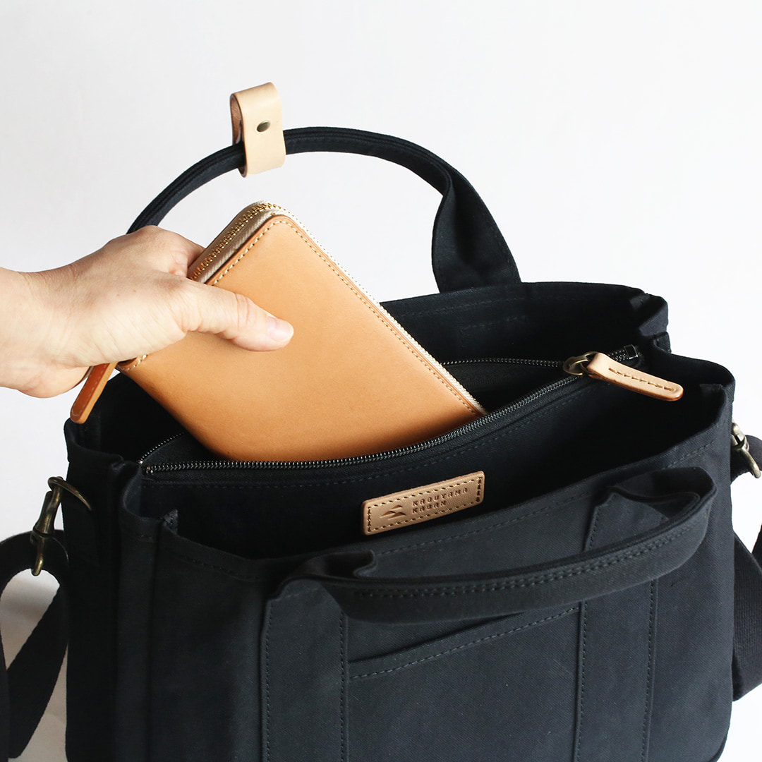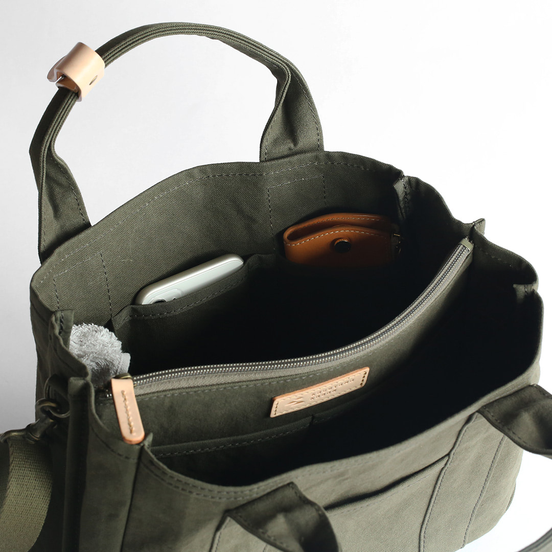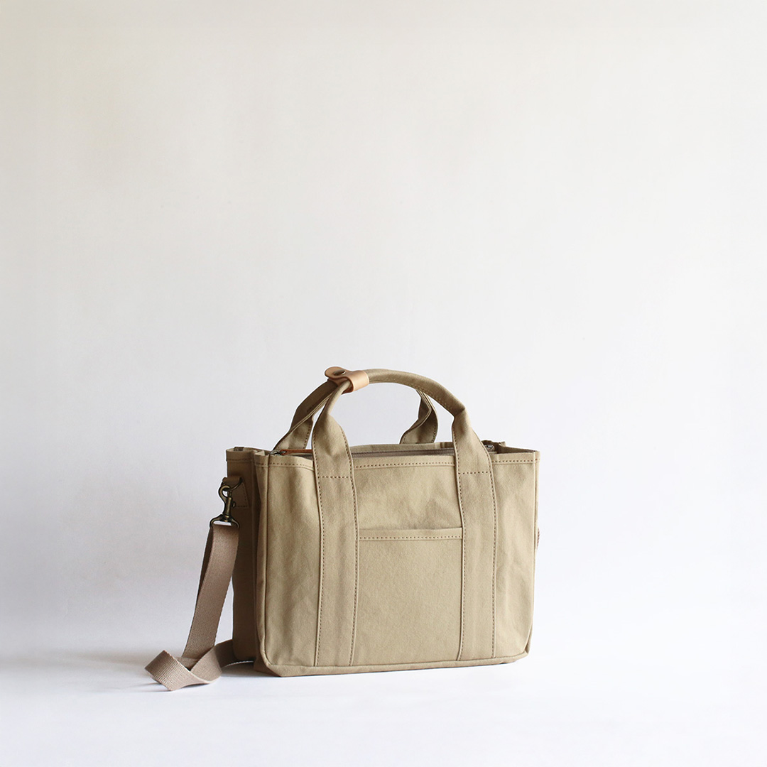 軽くて丈夫なパラフィン帆布で作った2WAYトートバッグです。ここにコレがこうあったらいいよね!という便利さをぎゅっと詰め込んで設計しました。