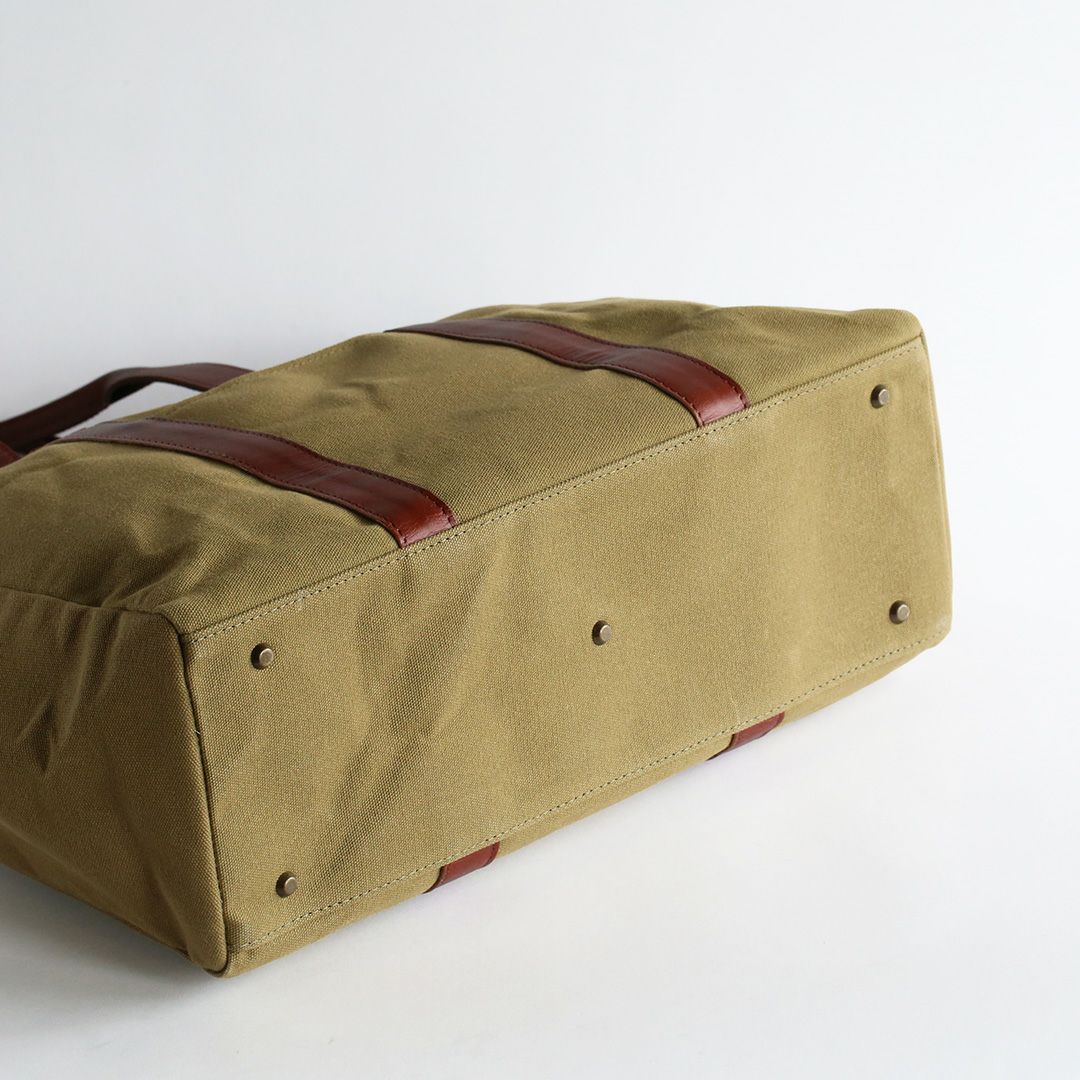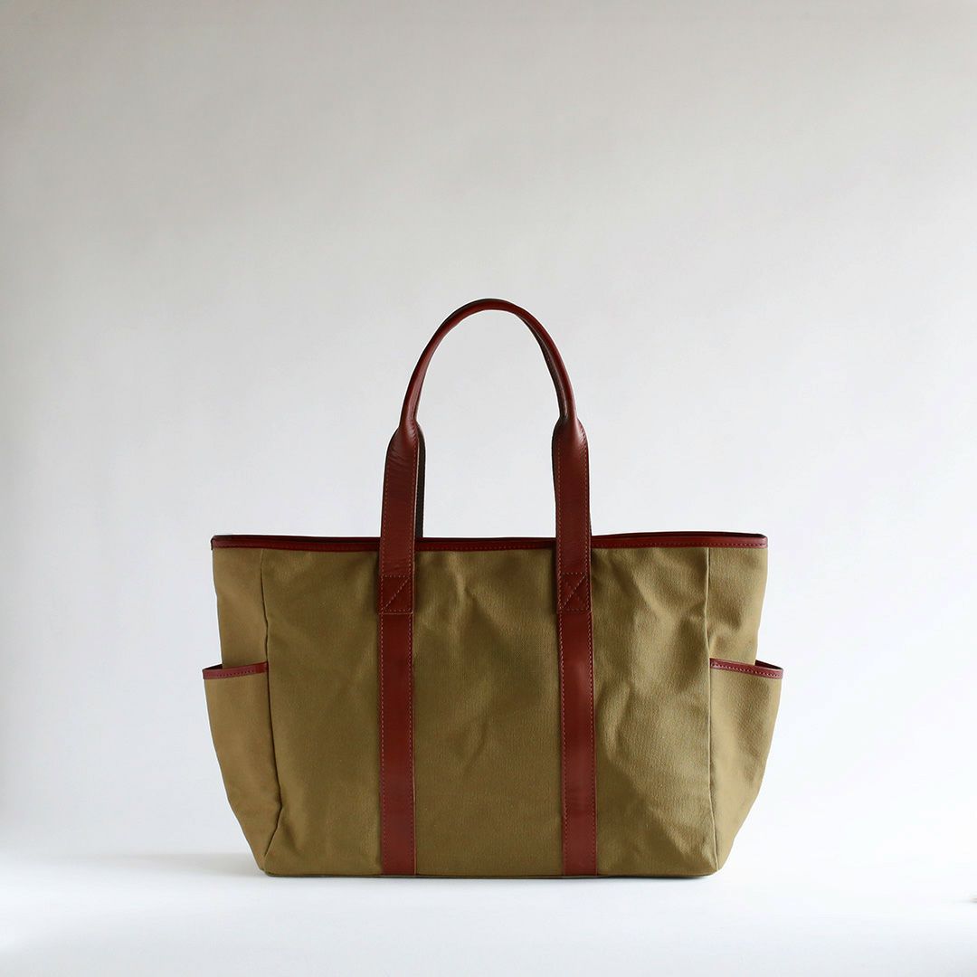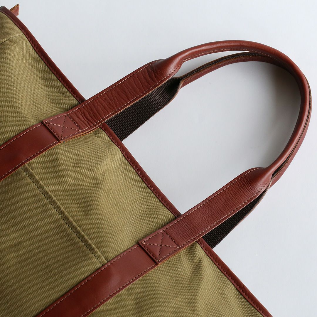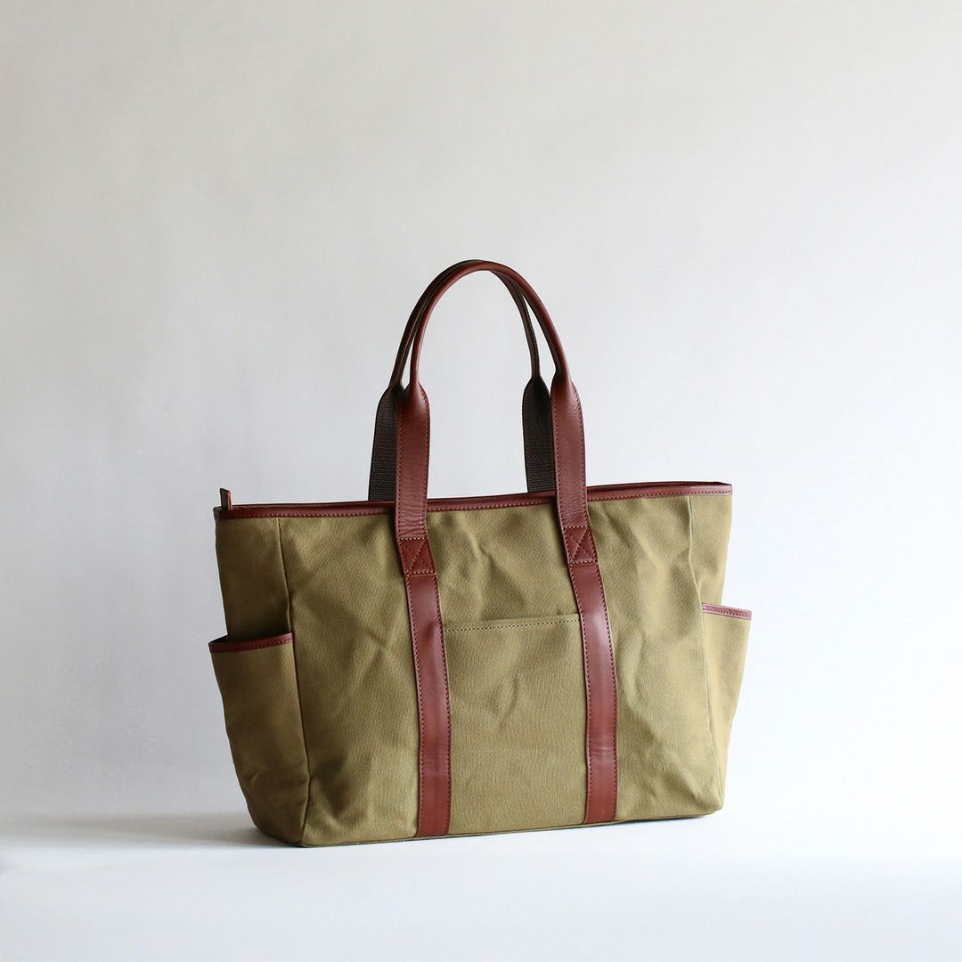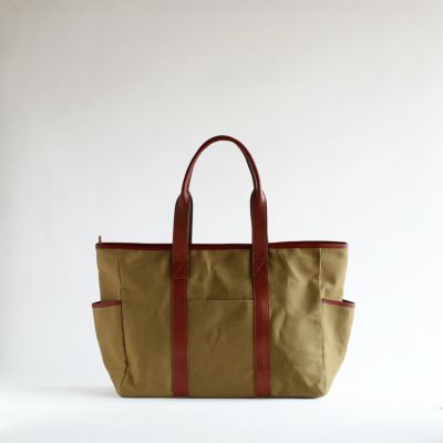 革と帆布を組み合わせた、丈夫で収納力抜群のトートバッグです。 荷物をまとめて持ち歩くのに便利な大きめサイズは、シーンを選ばず、どんなコーディネートにもマッチします。
