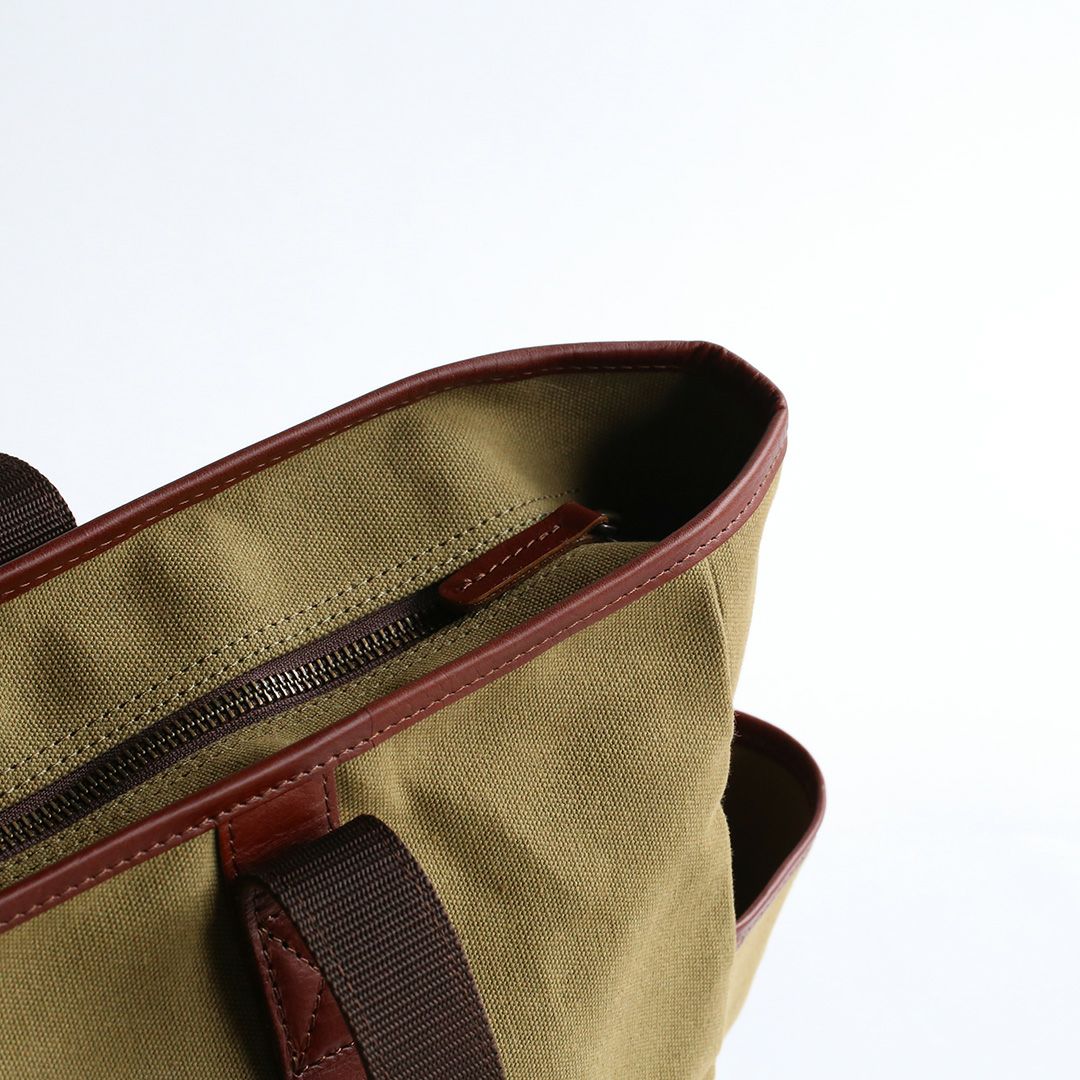 持ち手は、伸びやねじれにも強い革を使用しています。帆布も革も丈夫でしっかりとしたつくりだからこそ、たくさんの荷物も安心して持ち運んでいただけます。