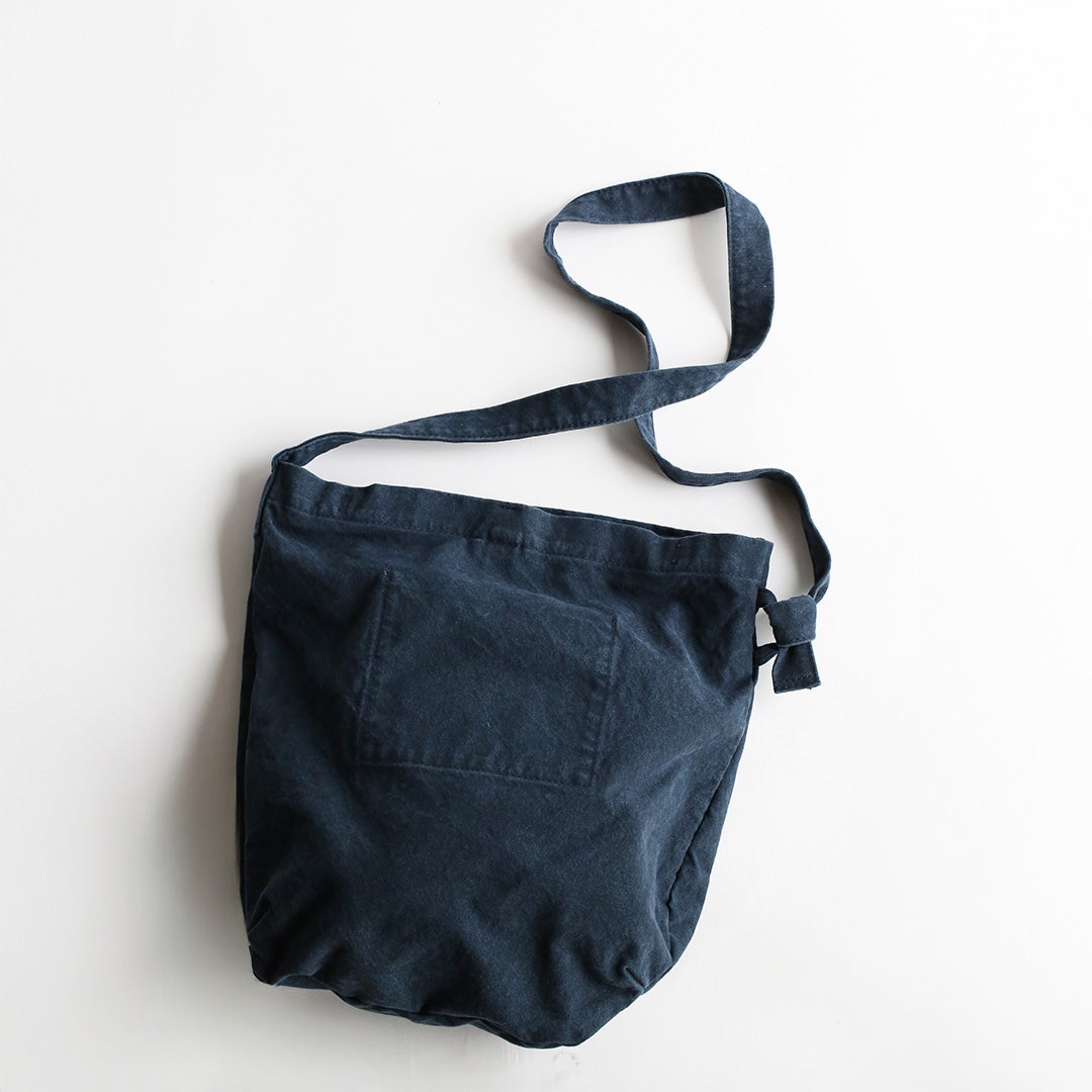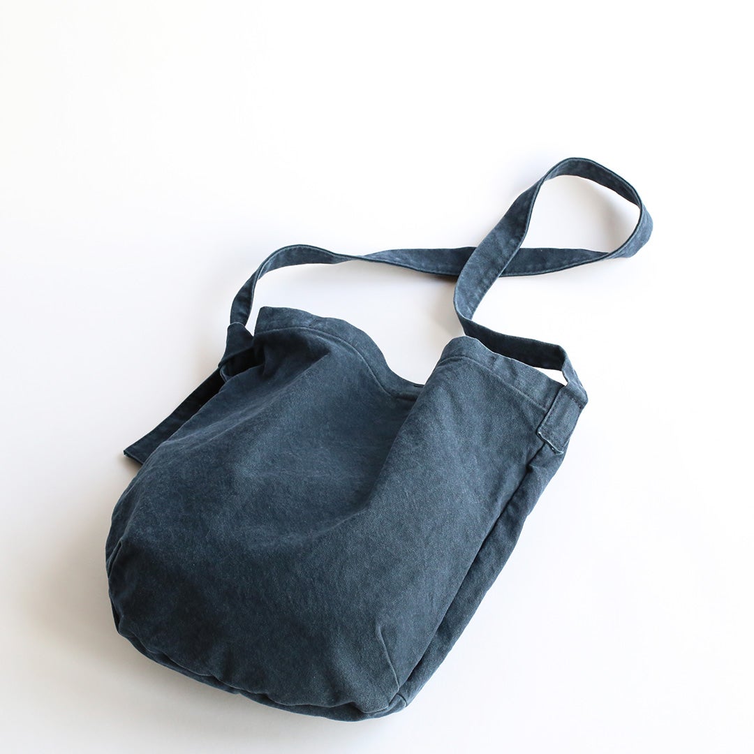 完成したショルダーバッグをストーンウォッシュ加工しているため(製品洗い)、ステッチや生地の重なりに沿うように色むらがつき、生地に加工を施した場合よりも立体感のある表情を味わっていただけます。