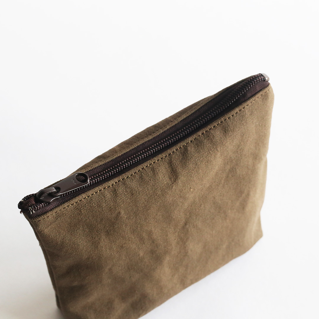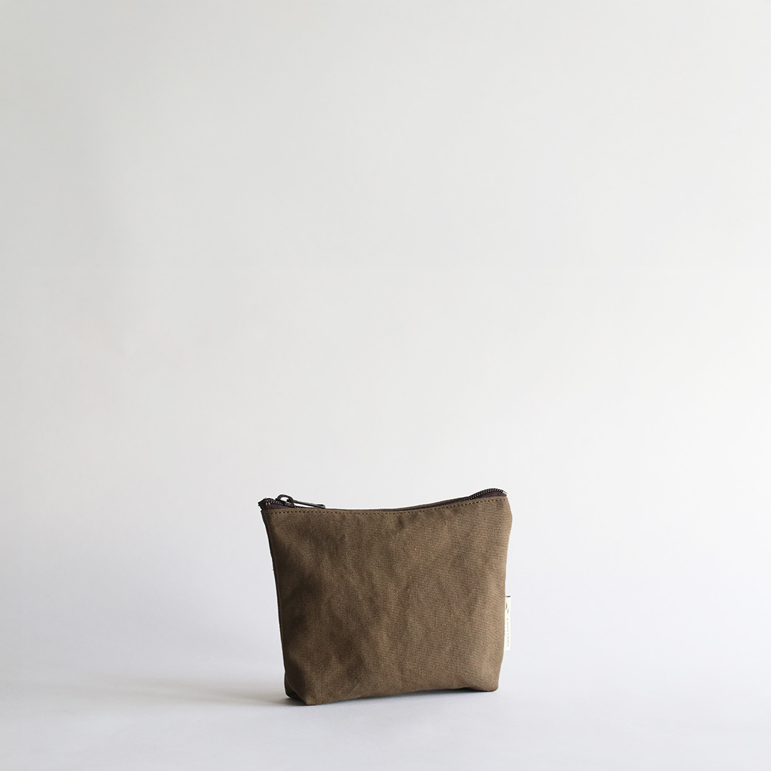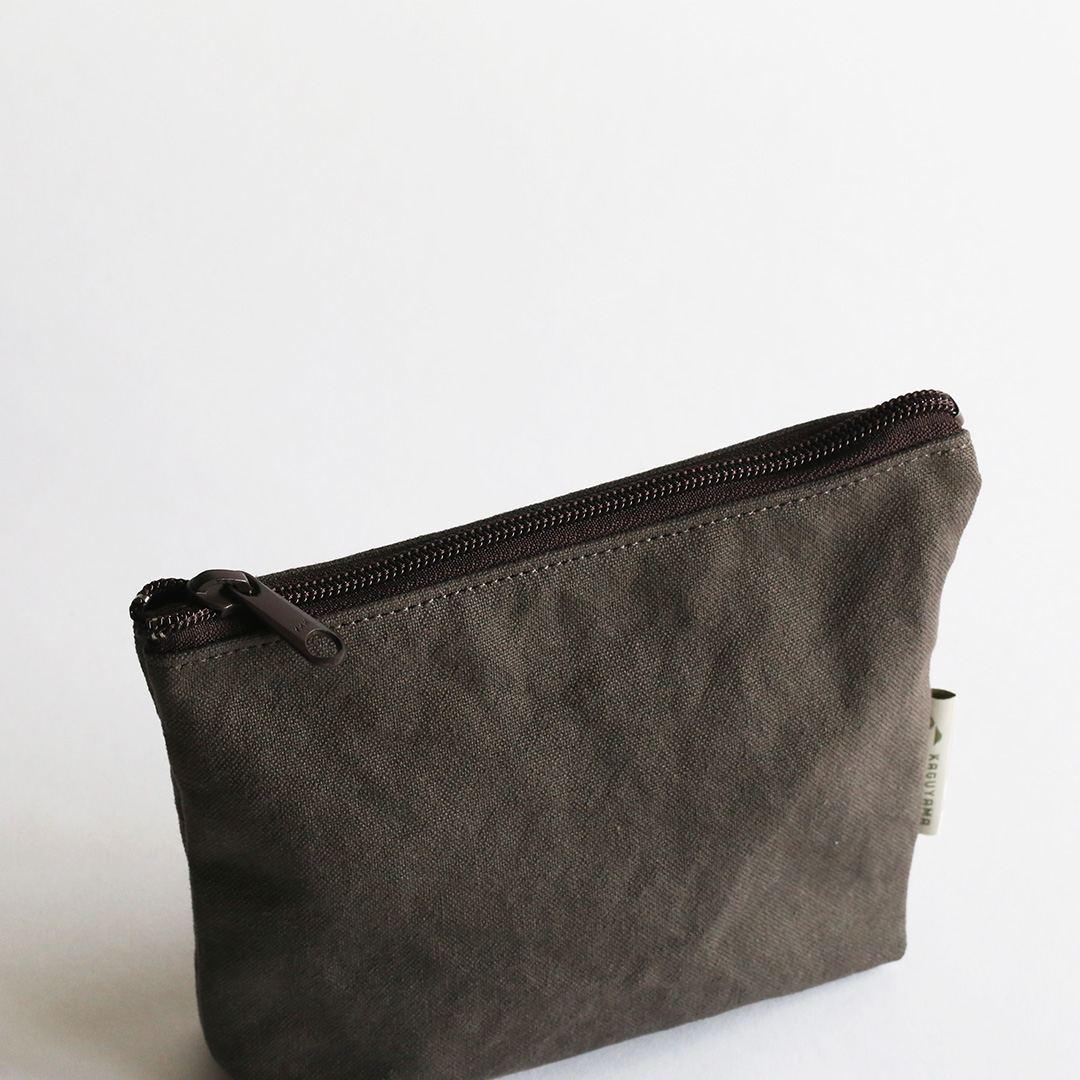 備長炭染め帆布でマルチに使えるミニポーチをつくりました。文房具や小物、コスメなどをすっきり収納でき、バッグの中でもかさばらず、持ち運びに便利。シンプルながら存在感のある色合いで、備長炭染め帆布の豊かな風合いを、いつも身近に感じていただけます。備長炭染め帆布シリーズのバッグとおそろいで持つも良し、色違いで持つも良し。4色全て揃えたくなるかわいさです。