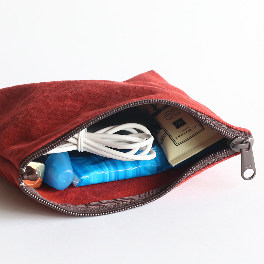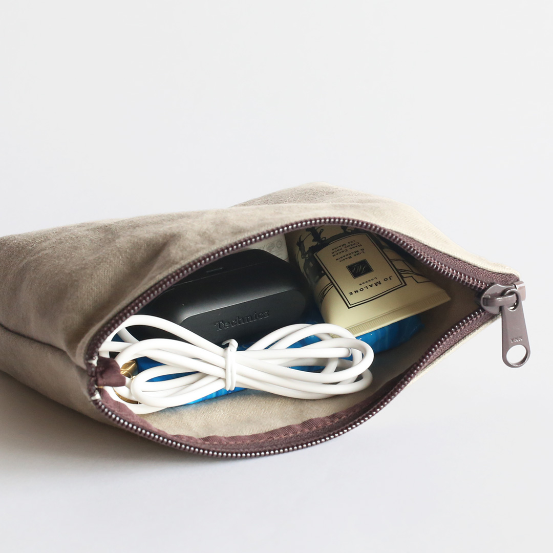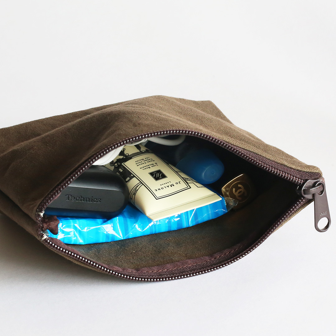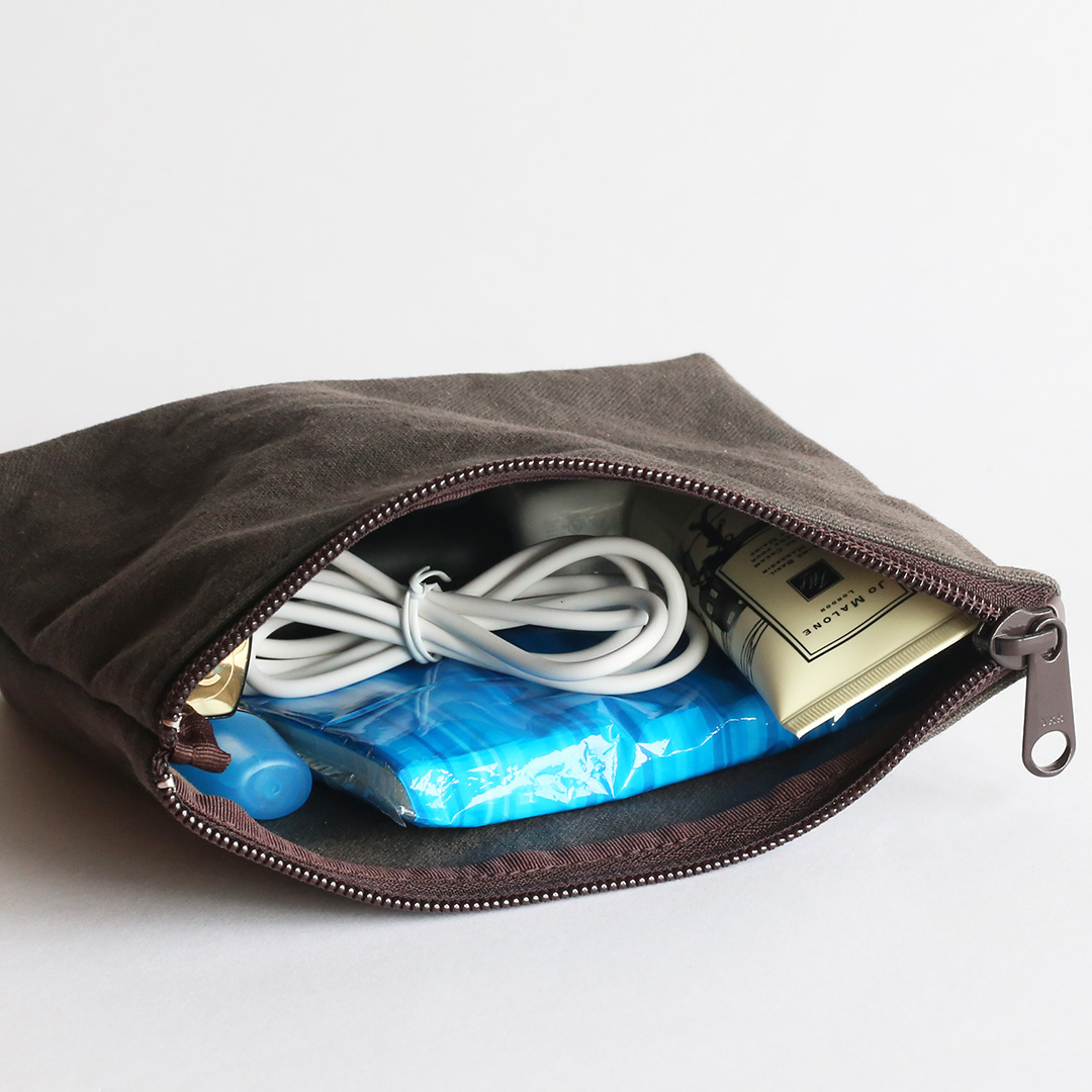 備長炭染め帆布でマルチに使えるミニポーチをつくりました。文房具や小物、コスメなどをすっきり収納でき、バッグの中でもかさばらず、持ち運びに便利。シンプルながら存在感のある色合いで、備長炭染め帆布の豊かな風合いを、いつも身近に感じていただけます。備長炭染め帆布シリーズのバッグとおそろいで持つも良し、色違いで持つも良し。4色全て揃えたくなるかわいさです。
