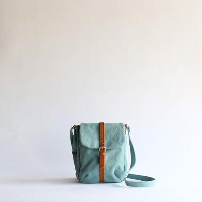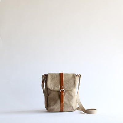 バイオウォッシュ加工を施すことで、ふんわりやわらかな肌あたりに仕上げた8号帆布のミニショルダーバッグ。帆布の風合いに合わせたヌメ革が良いアクセントになっています。その愛らしさに、心までふわっと軽くなるよう。お色はフェザーグレー、ブルーグレー、カフェオレの3色。どんな装いにも素敵にお持ちいただけます。