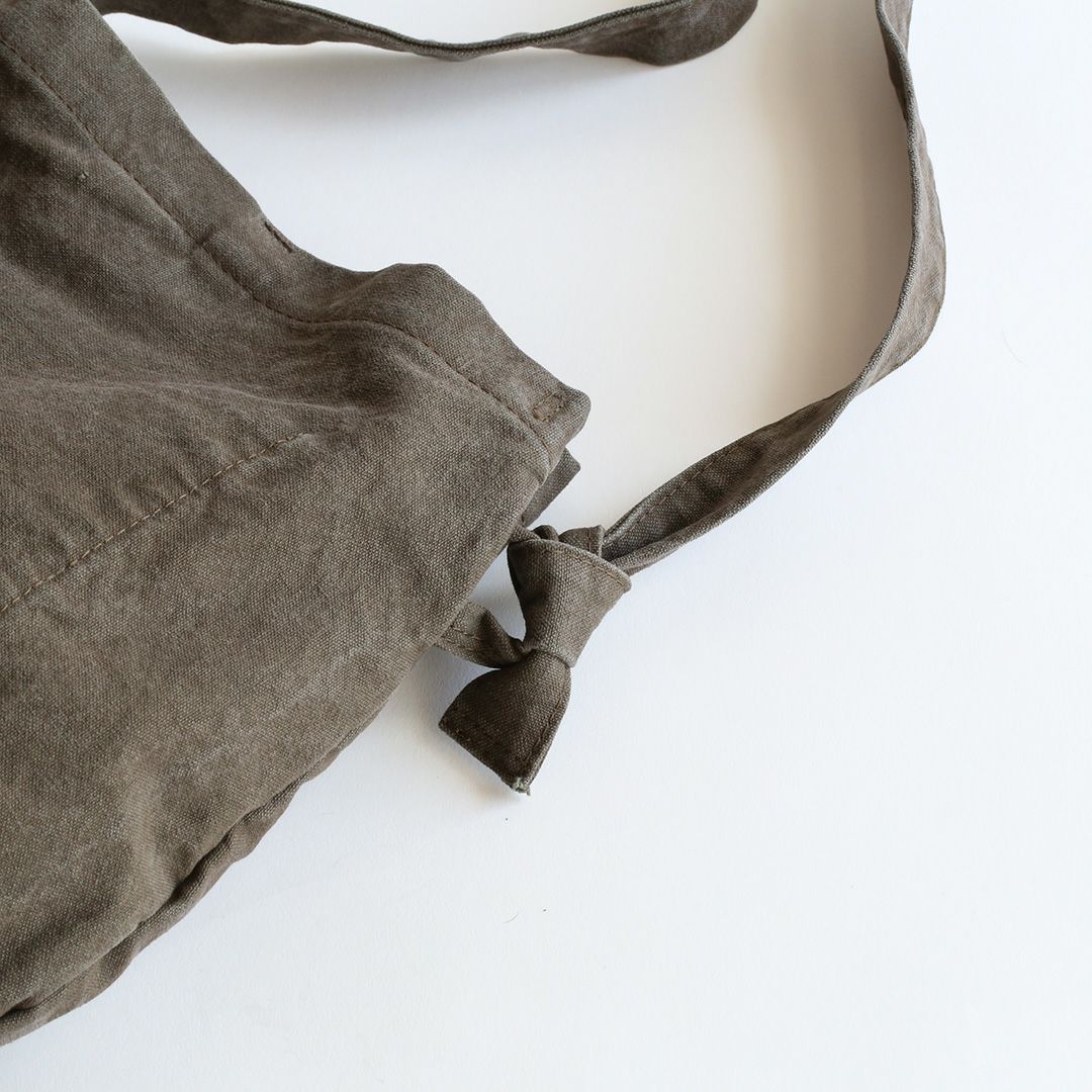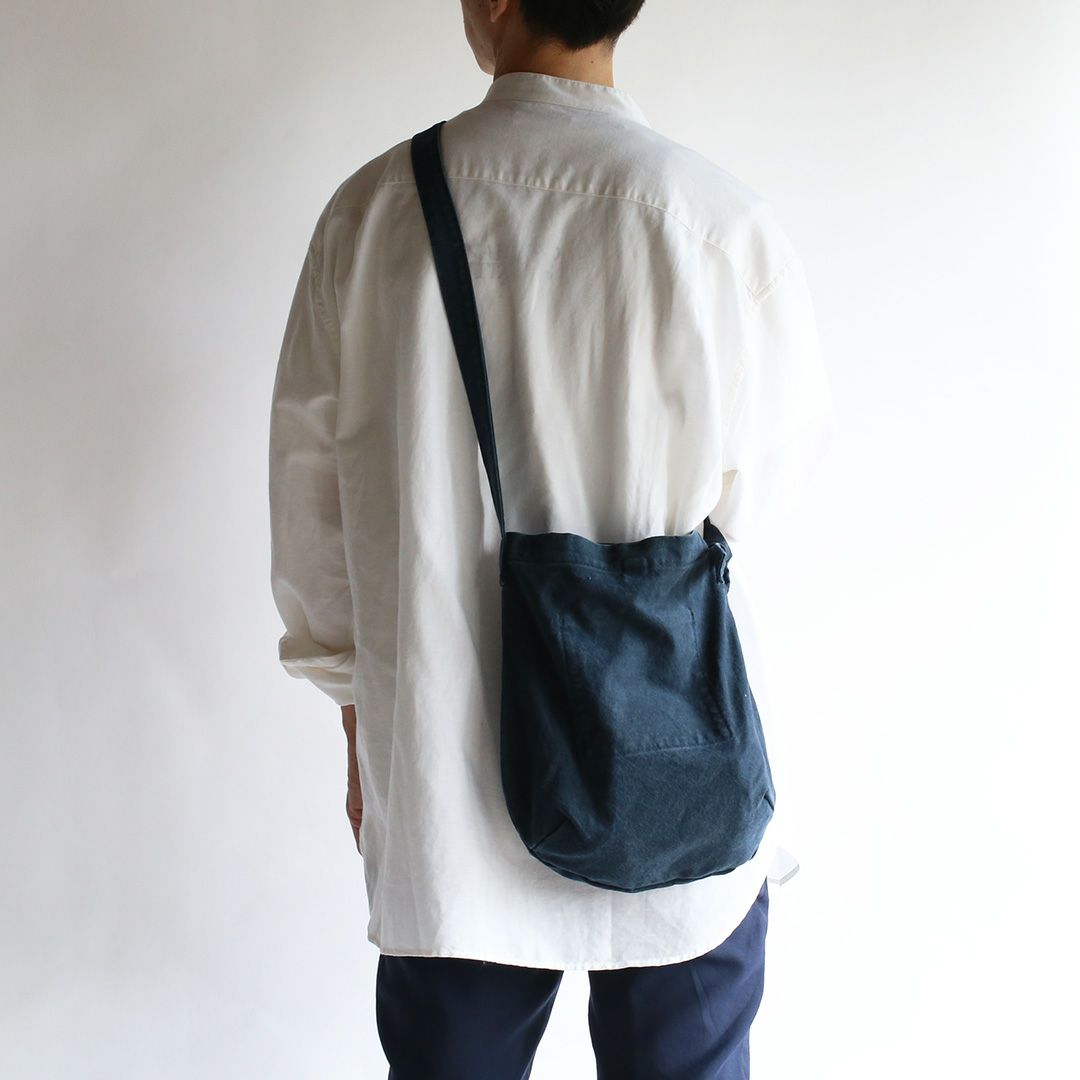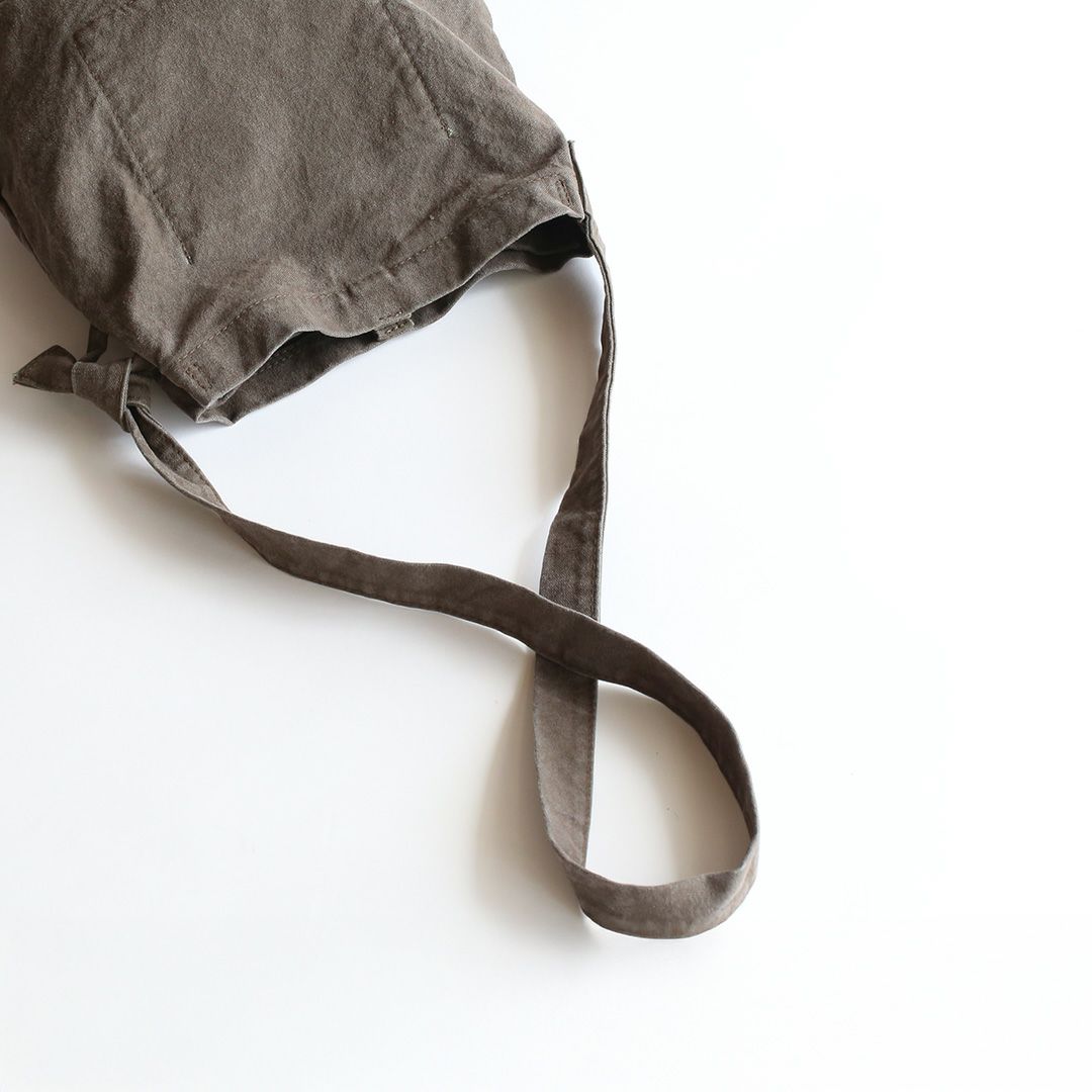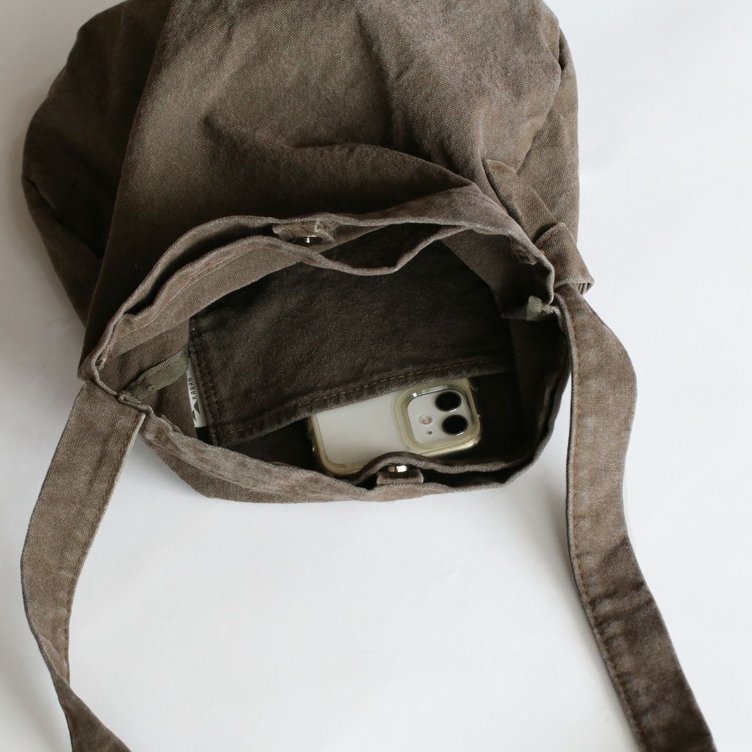 完成したショルダーバッグにストーンウォッシュ加工しているため(製品洗い)、ステッチや生地の重なりに沿うように色むらがつき、生地に加工を施した場合よりも立体感のある表情を味わっていただけます。