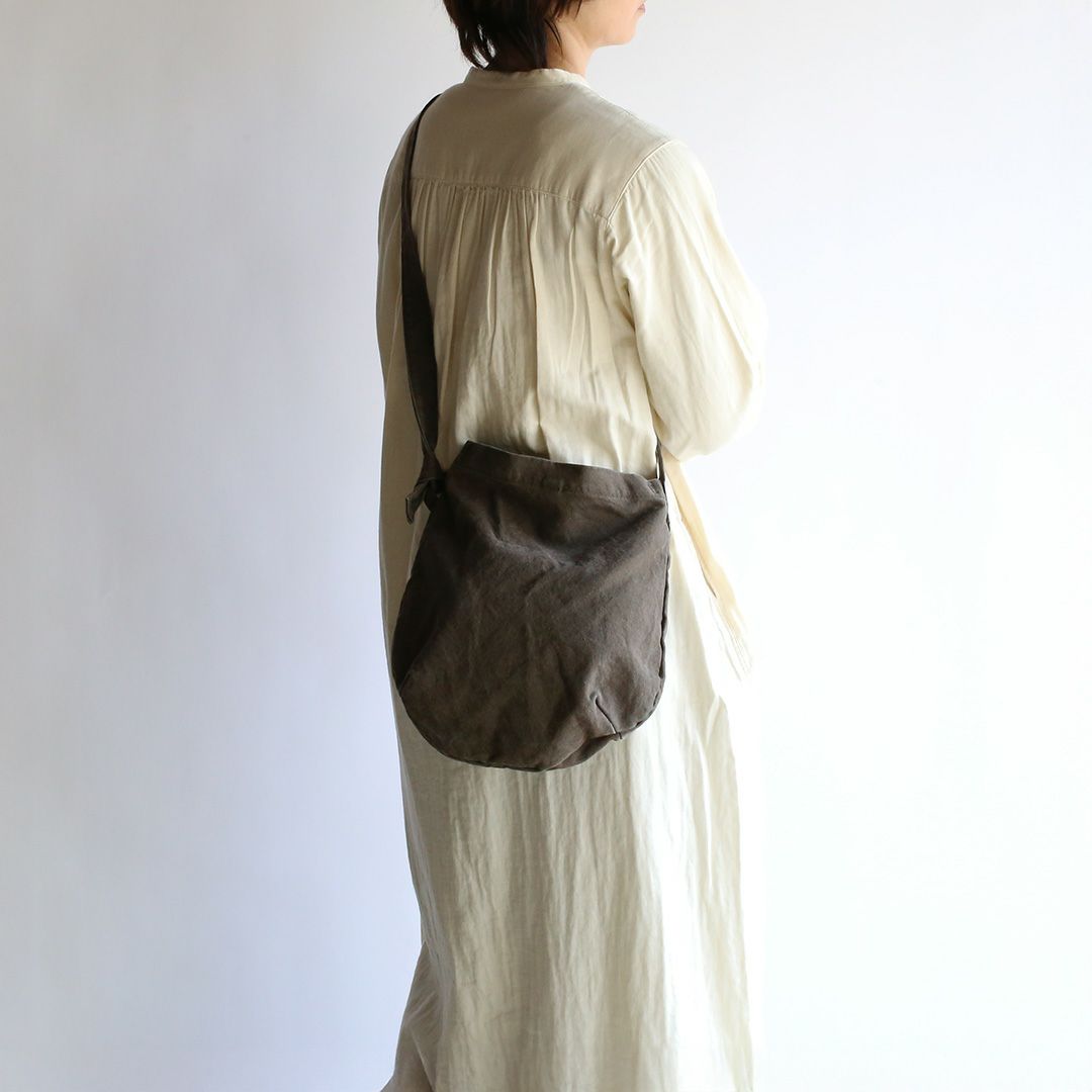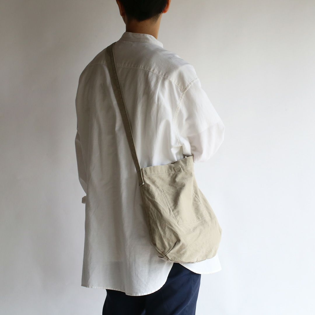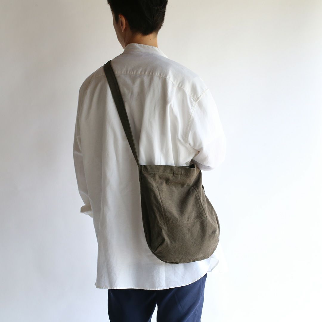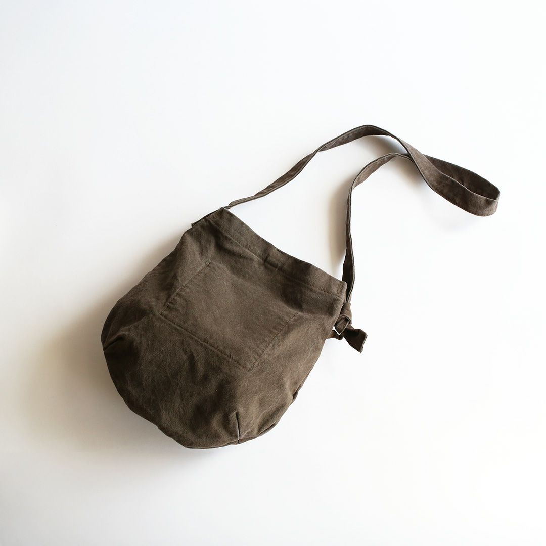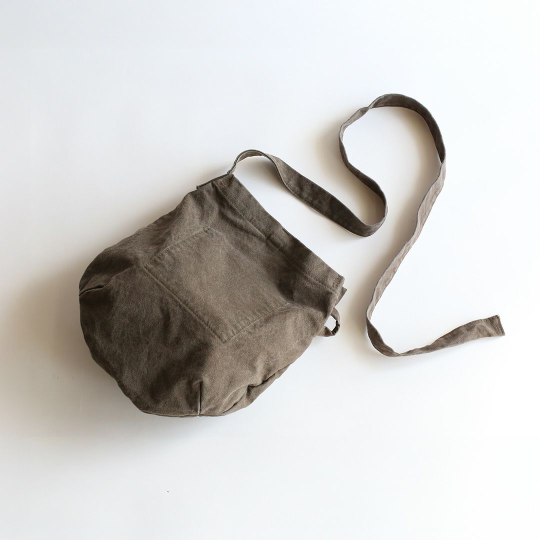 完成したショルダーバッグにストーンウォッシュ加工しているため(製品洗い)、ステッチや生地の重なりに沿うように色むらがつき、生地に加工を施した場合よりも立体感のある表情を味わっていただけます。