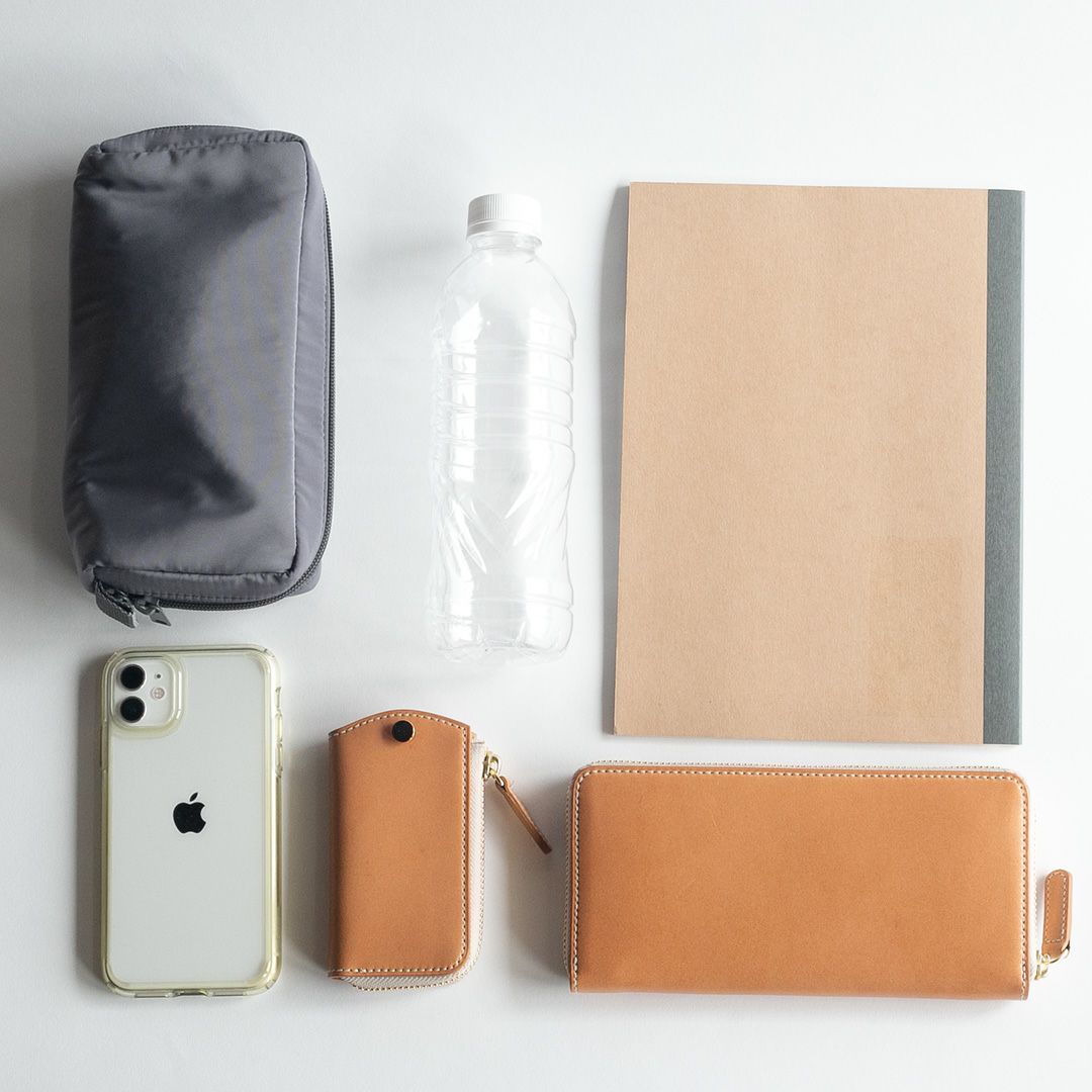 B5サイズのノートがすっぽり入るサイズ感です。500mlのペットボトルや長財布も収納できます。