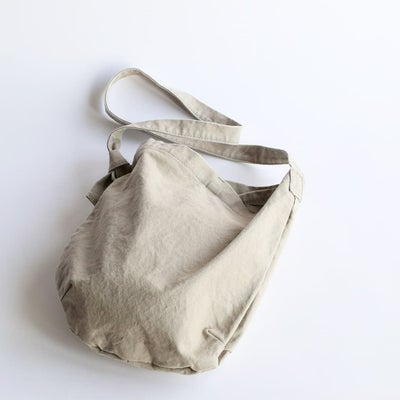 使うシーンに合わせて肩かけとしても手さげスタイルとしても持てる2WAYタイプ。持ち手は内側に取り付けているため、外からは見えないところがすっきりとしたデザインのためのポイント。軽くて、くたっと柔らかな肌触りと長く愛用してきたかのようなこなれ感を味わいながら、たくさんの荷物もラフに楽に持ち運べます。