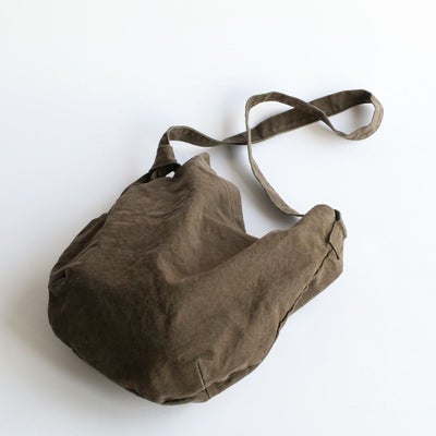 完成したショルダーバッグをストーンウォッシュ加工しているため(製品洗い)、ステッチや生地の重なりに沿うように色むらがつき、生地に加工を施した場合よりも立体感のある表情を味わっていただけます。
