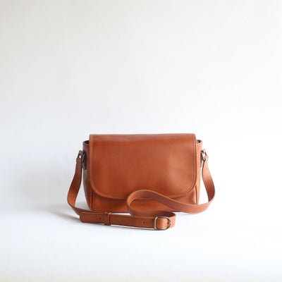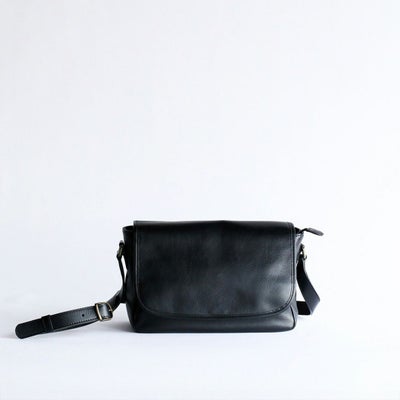 カジュアルな雰囲気になりがちなショルダーバッグですが、かぶせ部分の曲線美が作り出すフォルムは、きれいめなスタイルにも自然に溶け込みます。また、雨を気にすることなく革製品を持ち歩く楽しさを味わっていただけるよう、革の風合いそのままに軽撥水性と、色うつりが起きにくい仕上げを施しました。※より撥水性を高めるためレザー用防水スプレーもご使用いただけます。