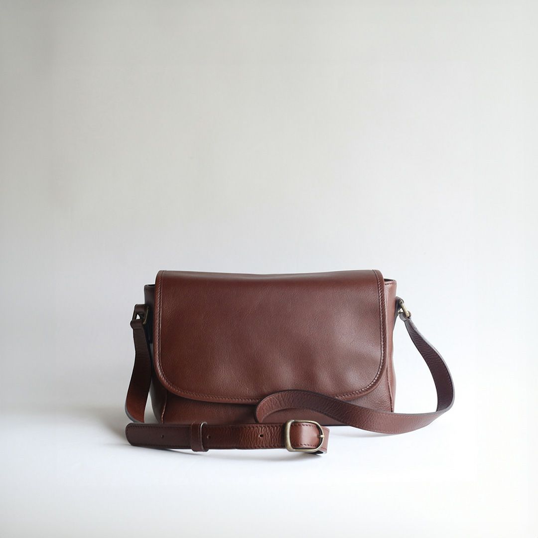 カジュアルな雰囲気になりがちなショルダーバッグですが、かぶせ部分の曲線美が作り出すフォルムは、きれいめなスタイルにも自然に溶け込みます。また、雨を気にすることなく革製品を持ち歩く楽しさを味わっていただけるよう、革の風合いそのままに軽撥水性と、色うつりが起きにくい仕上げを施しました。※より撥水性を高めるためレザー用防水スプレーもご使用いただけます。