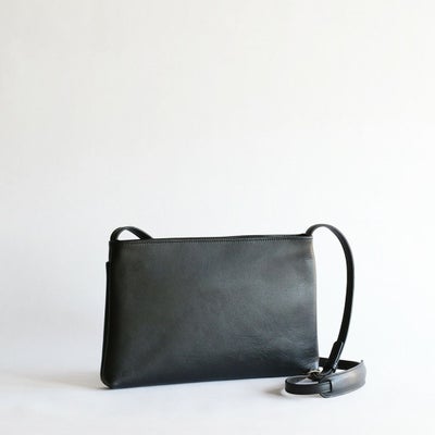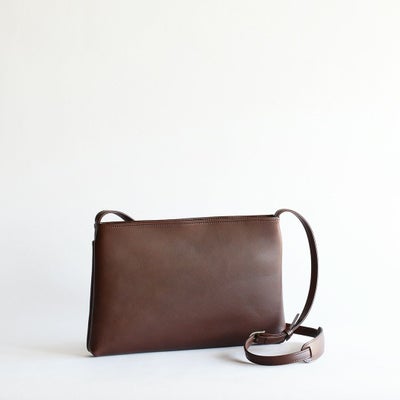 色移りや水濡れに強い牛革を使用したレザーサコッシュ。軽量かつスリムなフォルムで、身体に自然にフィットし、日常のあらゆるシーンで気軽にご使用いただけます。ラージサイズはスマートな印象ながらも優れた収納力を備えており、持ち物をすっきりと整理しながら、スタイリッシュに携行していただけます。