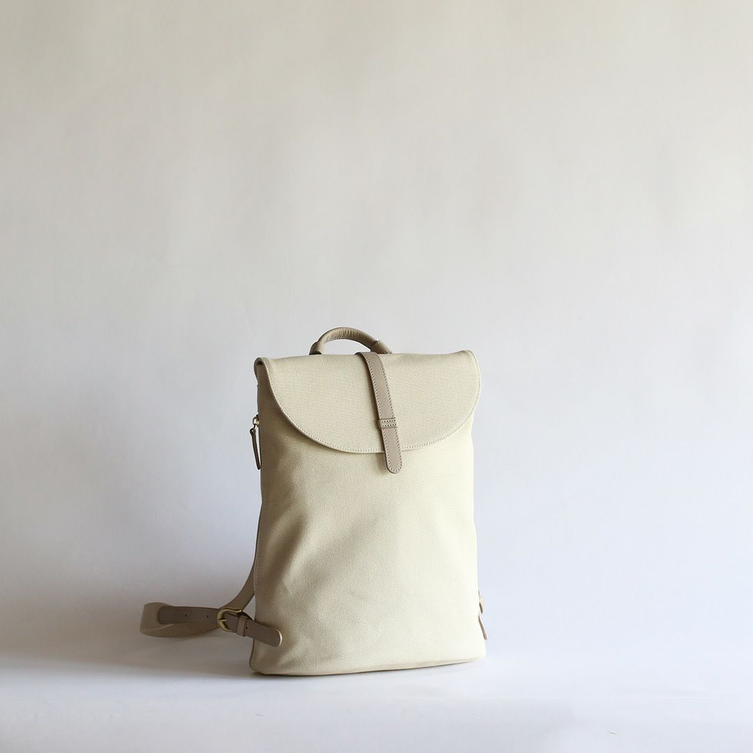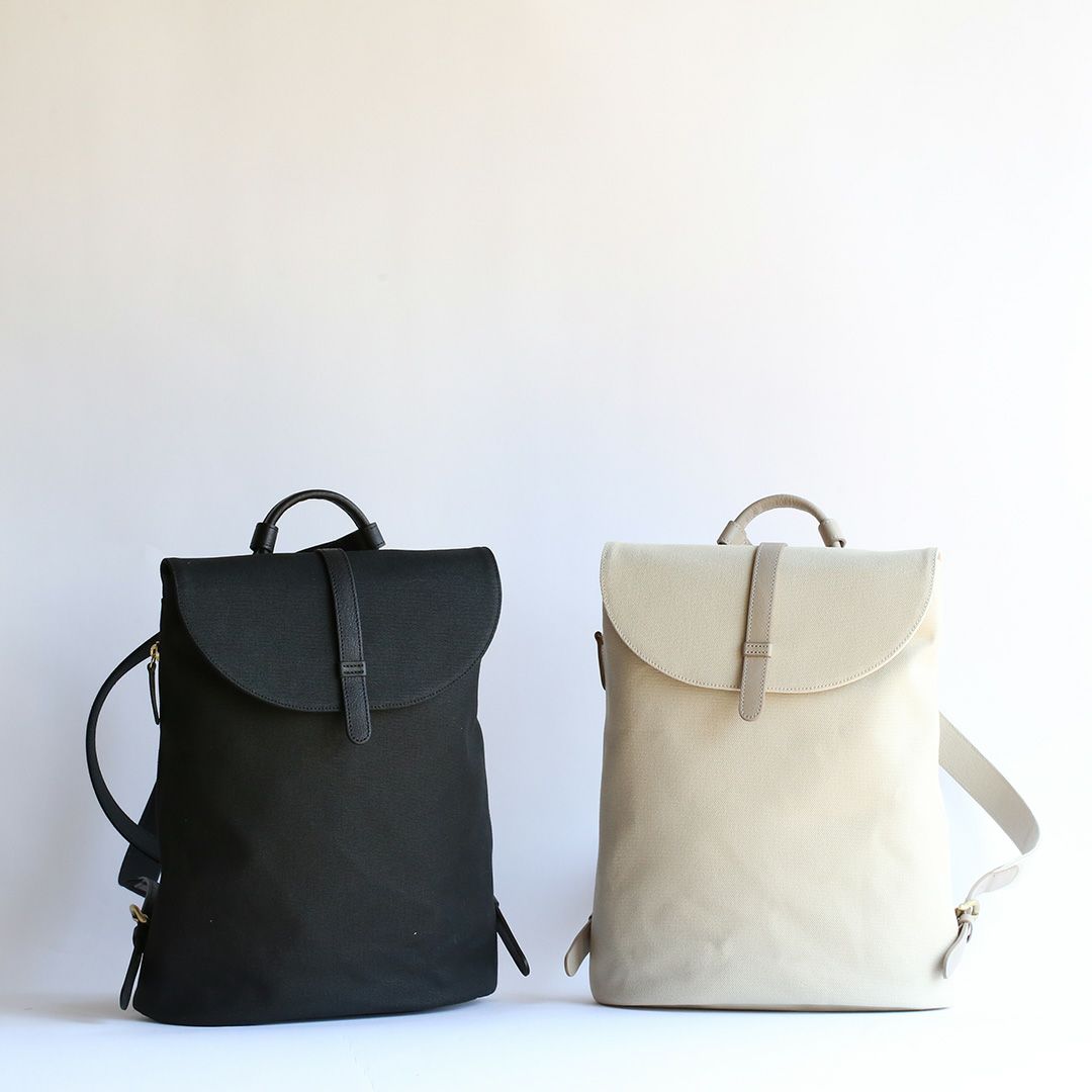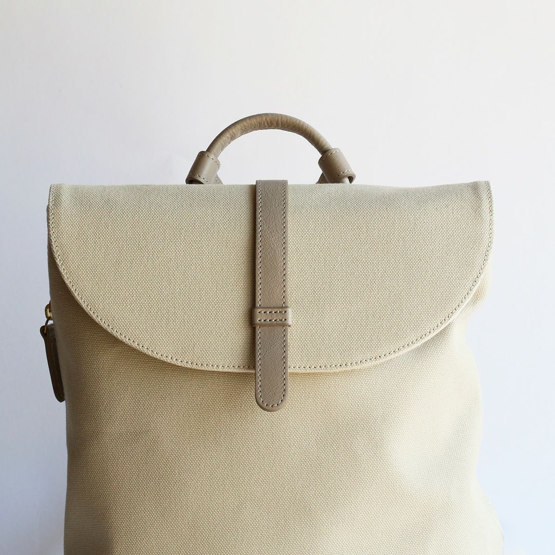 革と帆布でつくった「きれいでかわいい」リュック。牛革となめらかな8号帆布の組み合わせで、上品さとカジュアルの絶妙なバランスを叶えています。まさに"おとなかわいい"の理想形!軽量でスリムな形状のデザインでありながら、A4サイズの書類や13インチのノートPCも入ります。お出かけのパートナーとしてもお仕事カバンとしても、シーンを選ばずお使いいただけます。