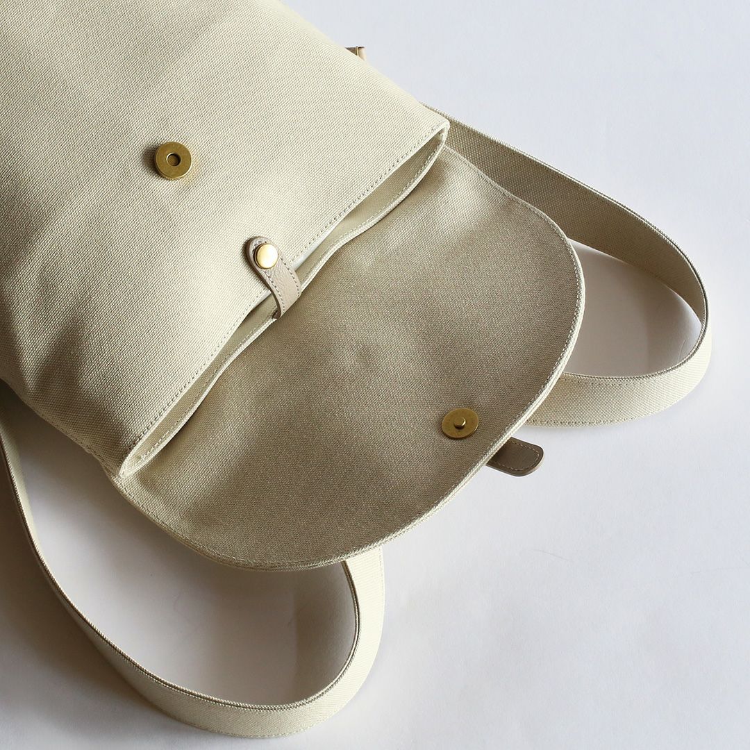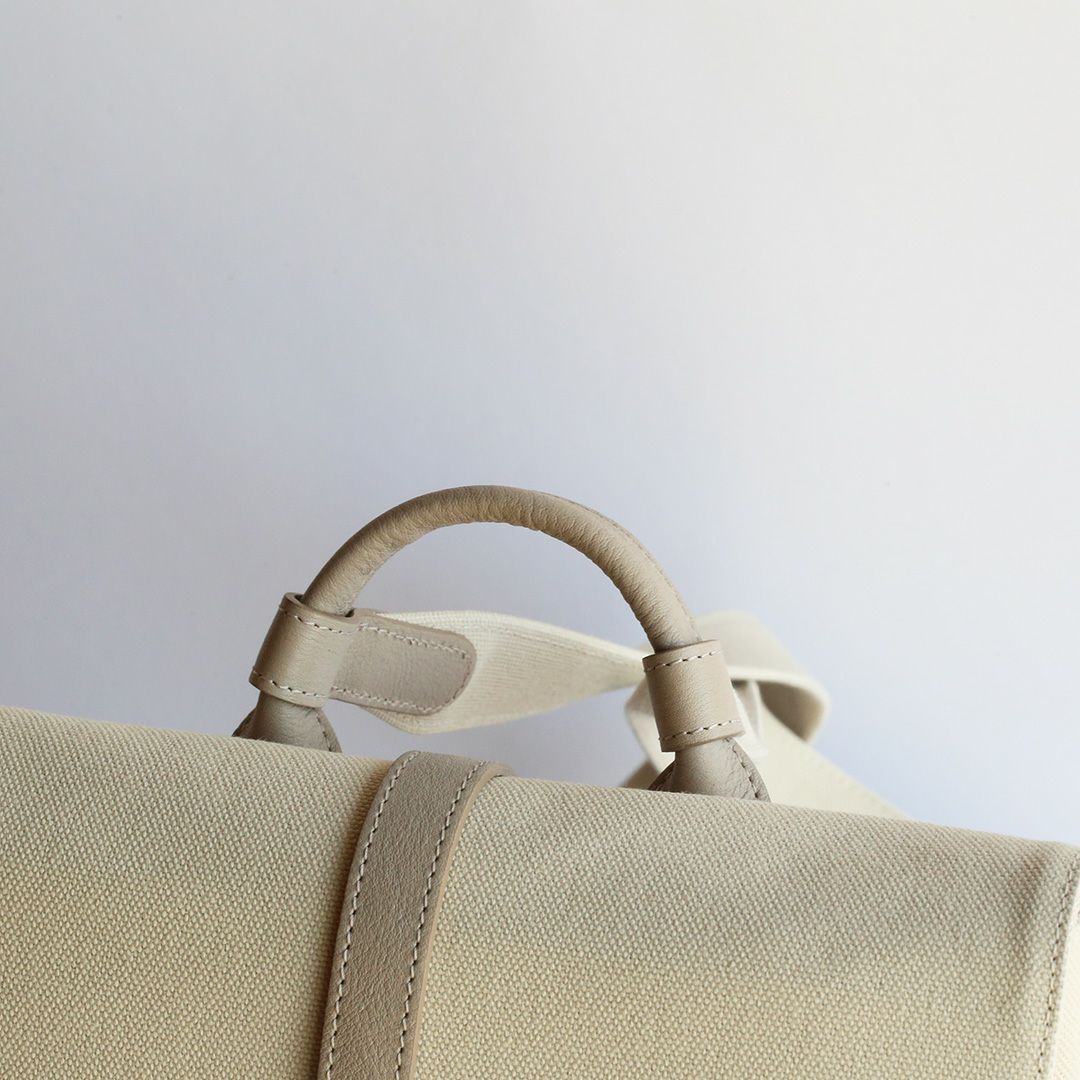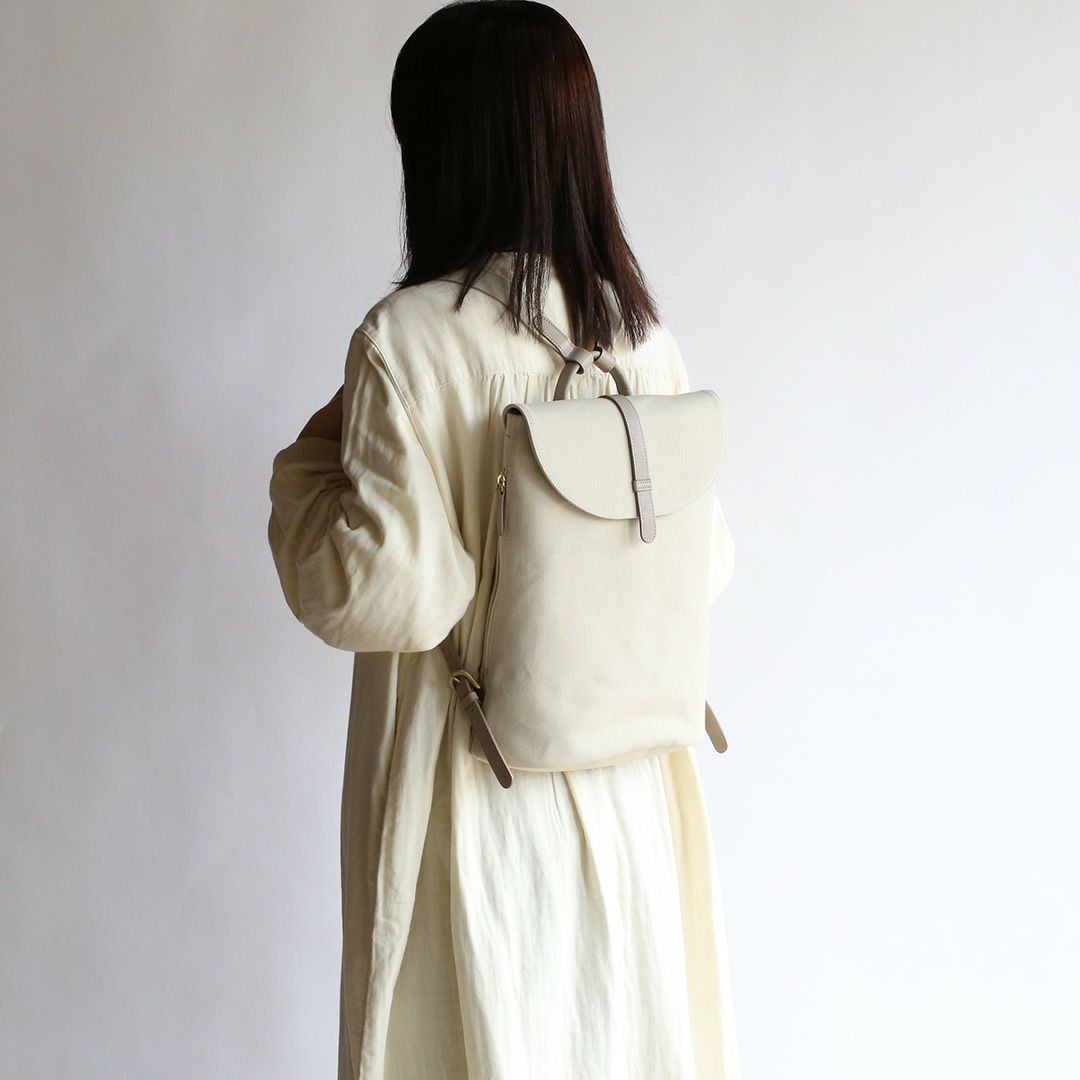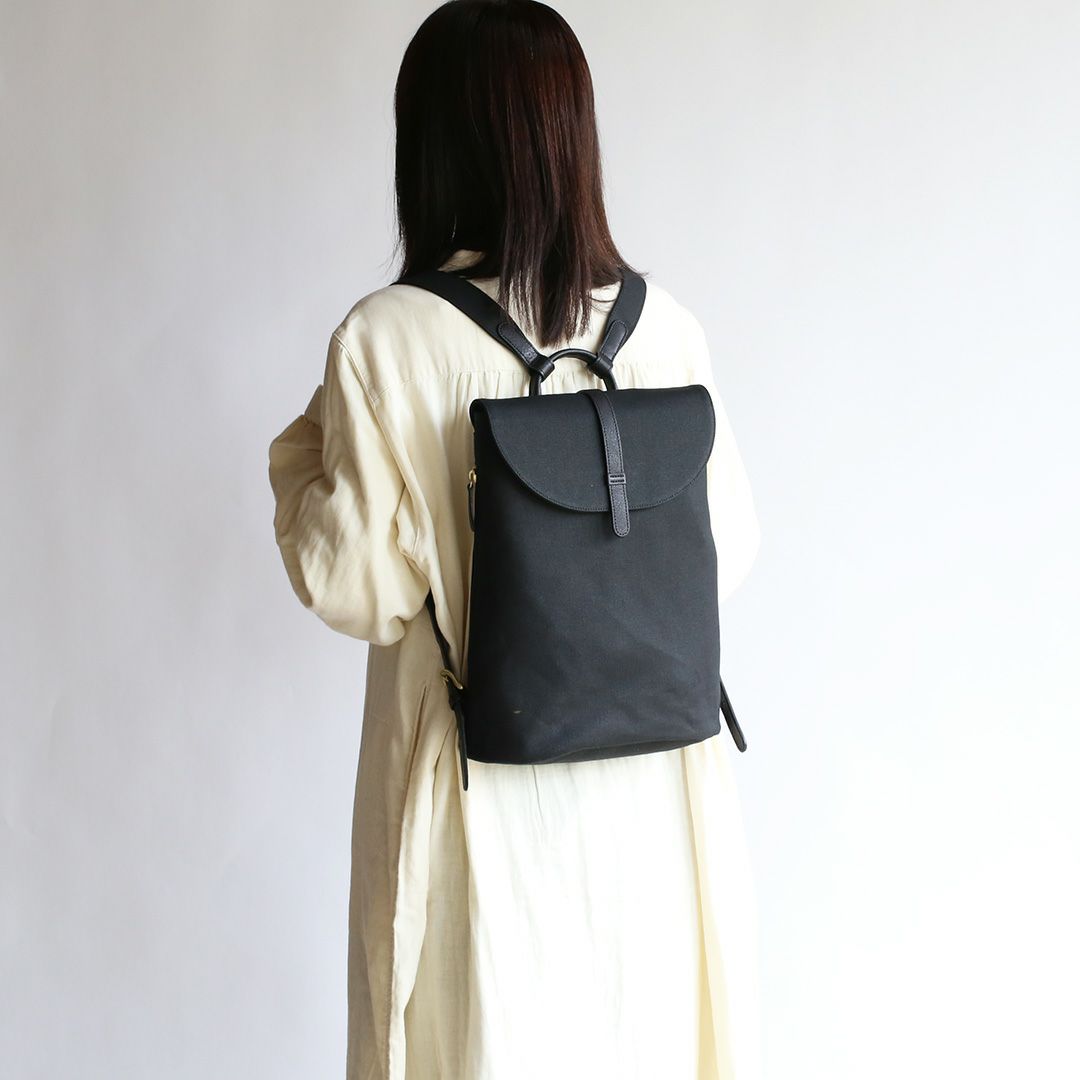 革と帆布でつくった「きれいでかわいい」リュック。牛革となめらかな8号帆布の組み合わせで、上品さとカジュアルの絶妙なバランスを叶えています。まさに"おとなかわいい"の理想形!軽量でスリムな形状のデザインでありながら、A4サイズの書類や13インチのノートPCも入ります。お出かけのパートナーとしてもお仕事カバンとしても、シーンを選ばずお使いいただけます。