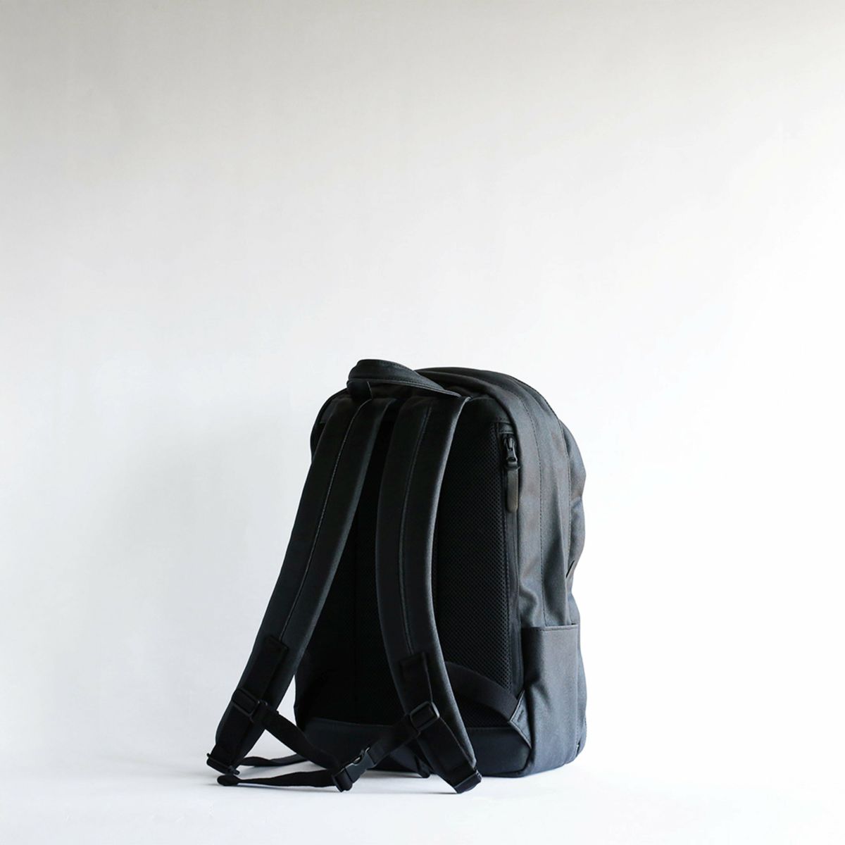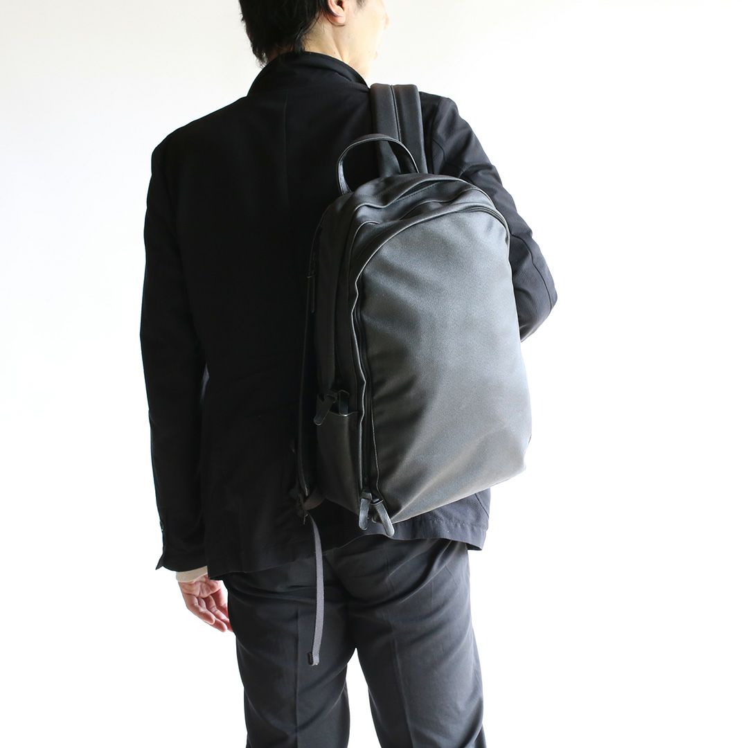 このリュックは、ファスナー部分を覆ってくれる”屋根”のような構造を設けることで水を遮断しております。 完全にマスキングするのではなく必要な部分のみを覆い、内側にスキマを作ることで空間を有効活用。 これは日本の木造家屋の「軒(のき)」や「庇(ひさし)」より着想を得ております。またファスナーを覆い隠すことで防犯性にも一役買っています。
