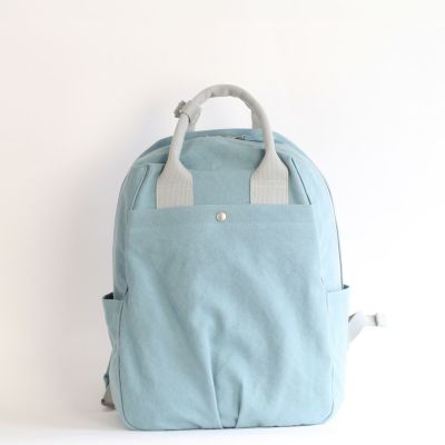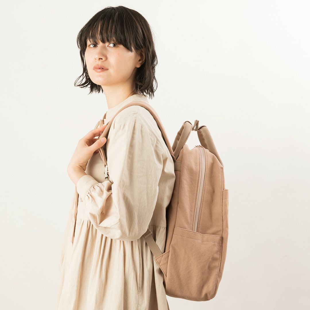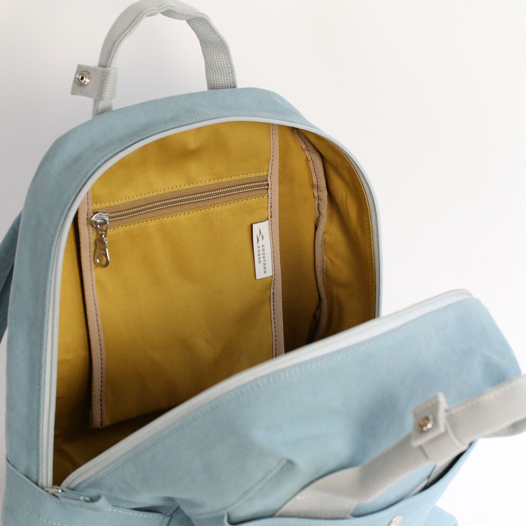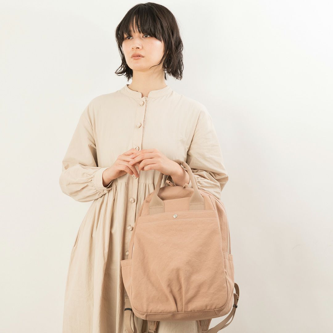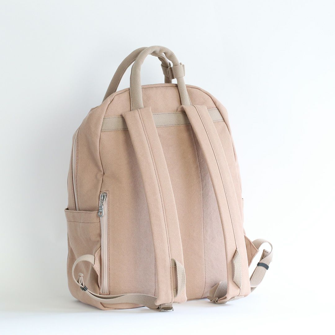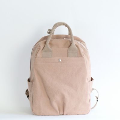 国産の8号帆布でつくった、持ち手が自立するA4サイズ対応のリュックです。背負っても持っても愛らしい、ふんわり柔らかい雰囲気のデザインは、リュック本体からマチへ回り込むように形取る設計により生み出されています。見た目はふんわりしてますが、持ち手やベルトのつくりのこだわりなど、快適な背負い心地のための工夫はしっかり詰め込んでいます。