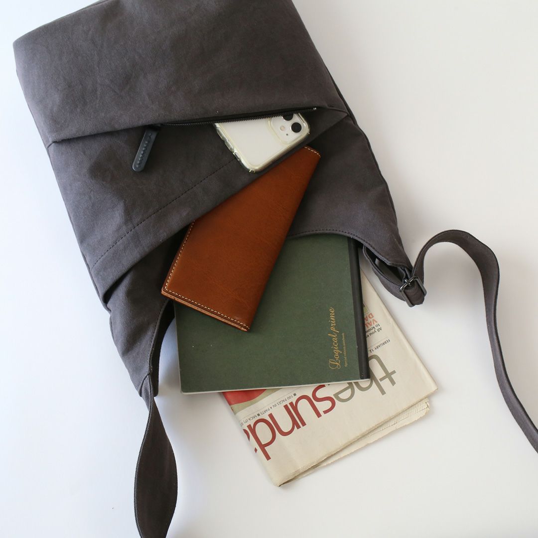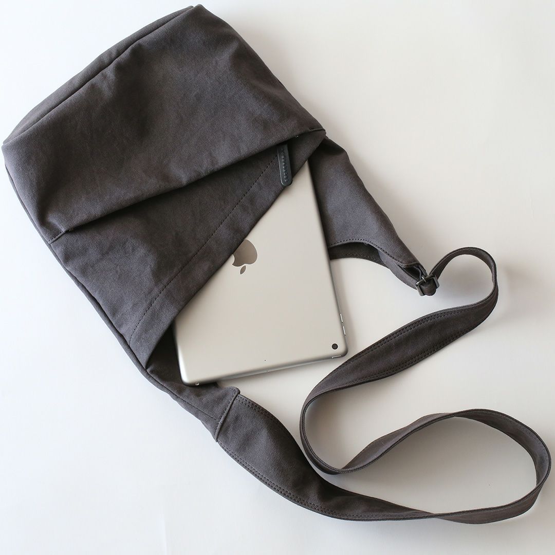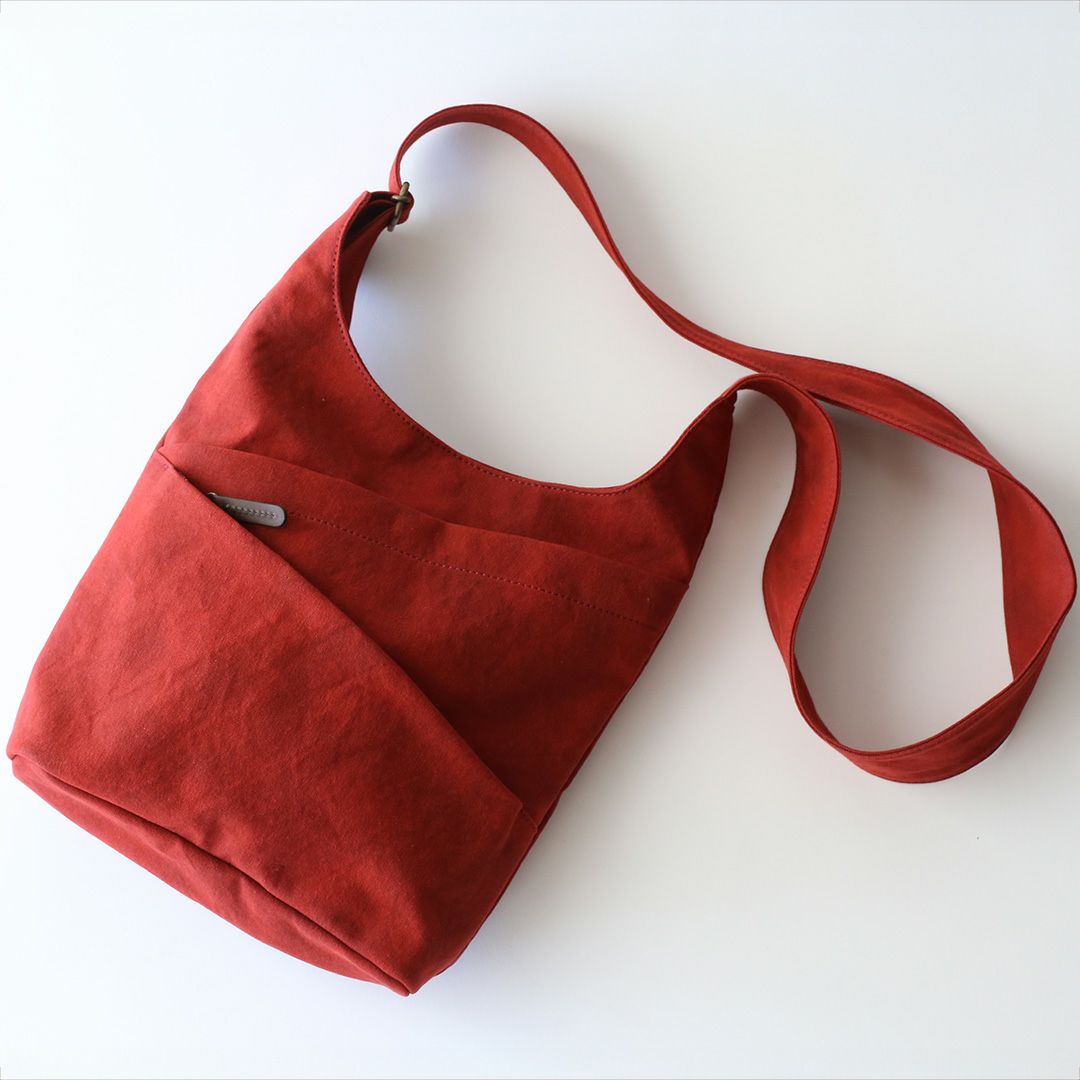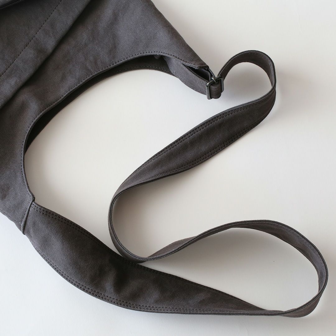 まるでタケノコのようにポケットを斜めにつけることで、荷物を収納しやすく、取り出しやすいように設計しています。 備長炭染めの味わい深い帆布の質感と、タケノコのようなユニークなデザインを組み合わせることで、機能的なだけでなく、使うたびに特別感を味わえるショルダーバッグに仕上がりました。