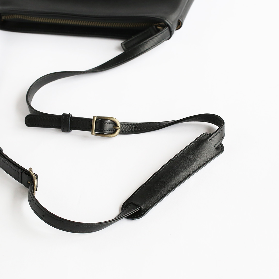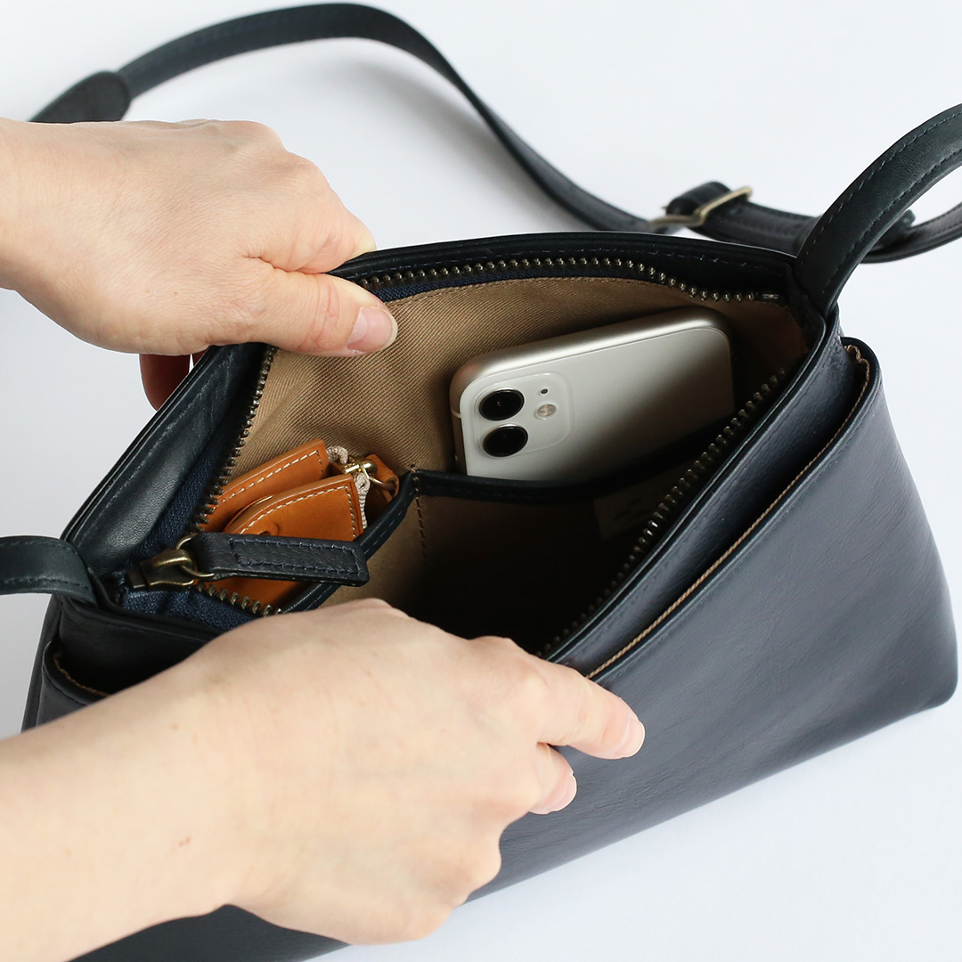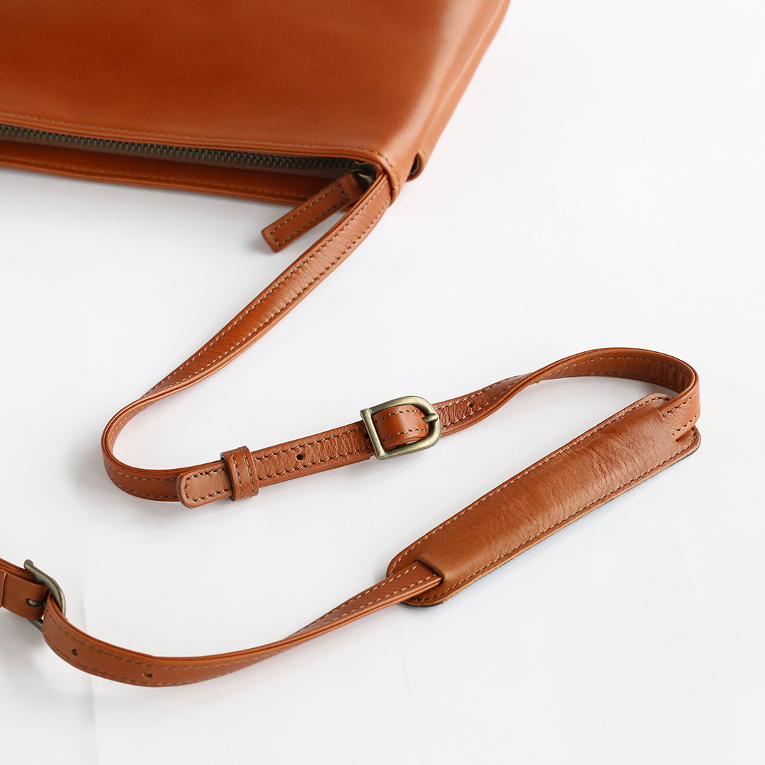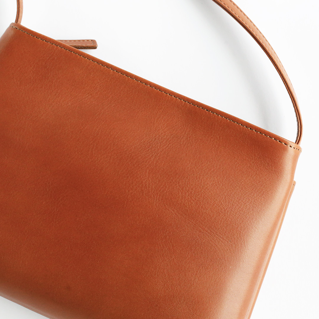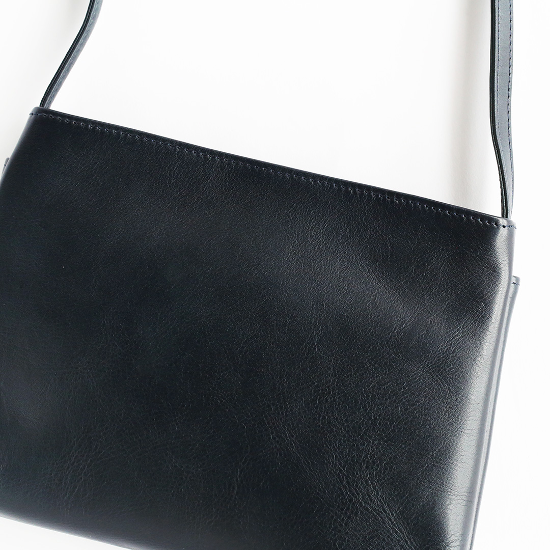 色移りや水濡れに強い特性を備えた牛革で製作したレザーサコッシュです。軽量で身体にフィットするスリムなデザインなので、気軽にいつでもどこでも持ち運んでいただけます。ブラック、ネイビー、ブラウン、キャメルの4色展開です。