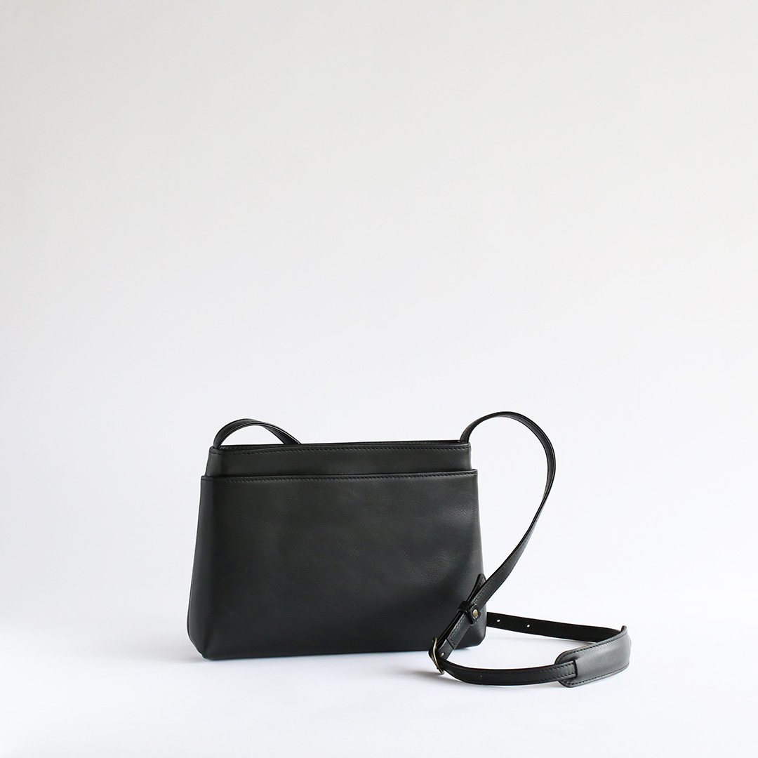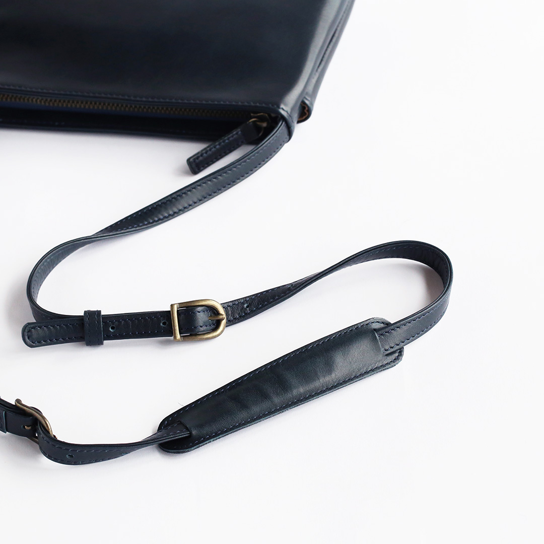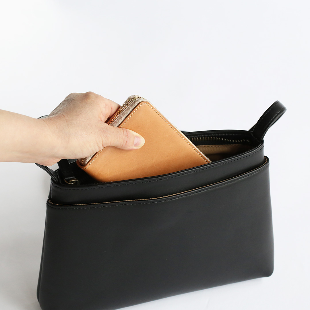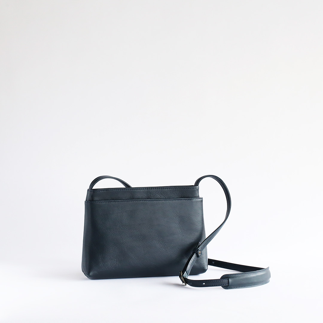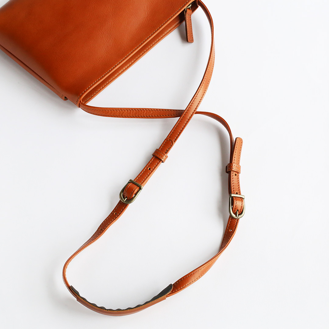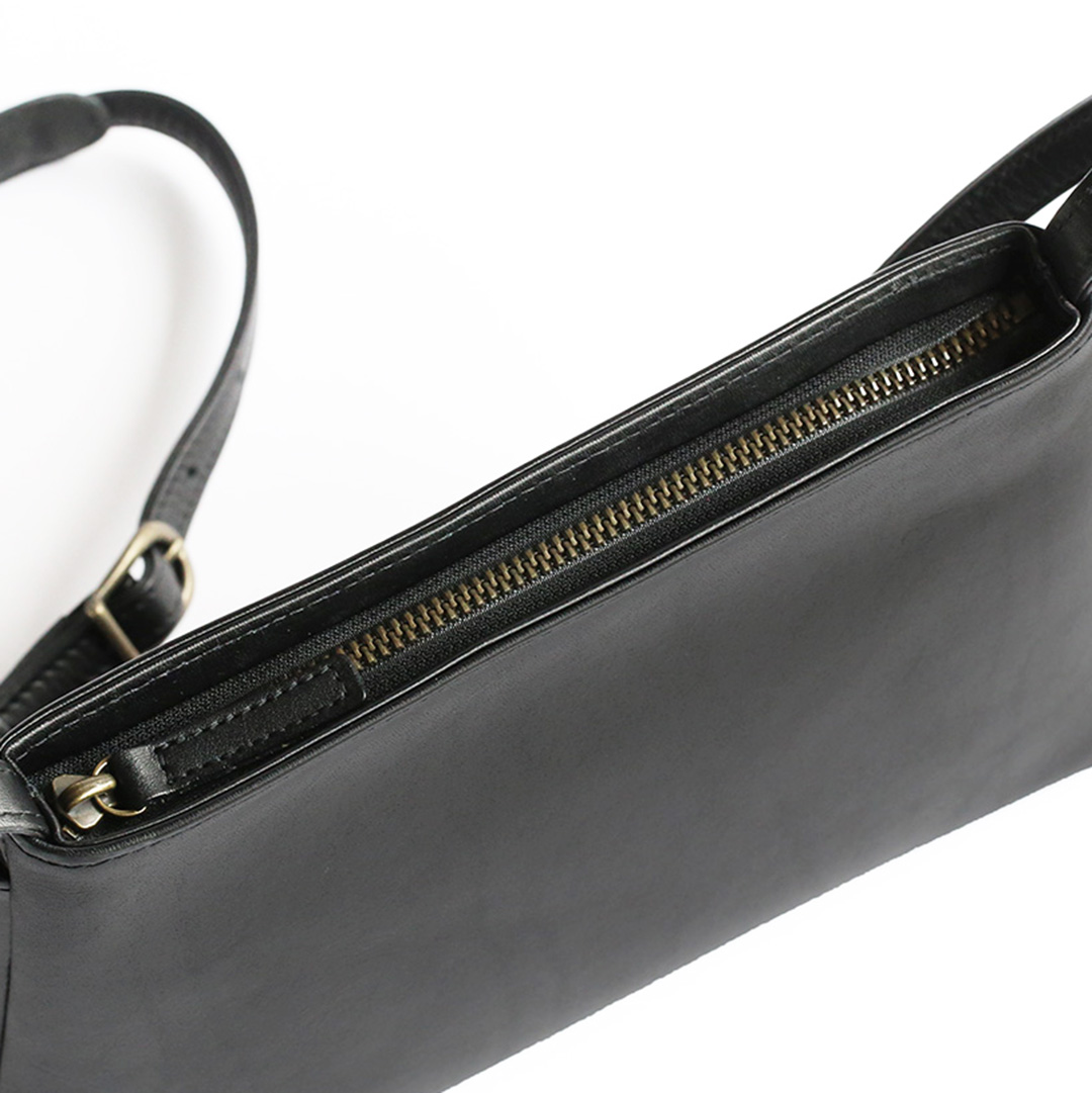 色移りや水濡れに強い特性を備えた牛革で製作したレザーサコッシュです。軽量で身体にフィットするスリムなデザインなので、気軽にいつでもどこでも持ち運んでいただけます。ブラック、ネイビー、ブラウン、キャメルの4色展開です。