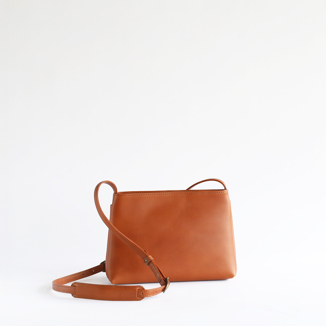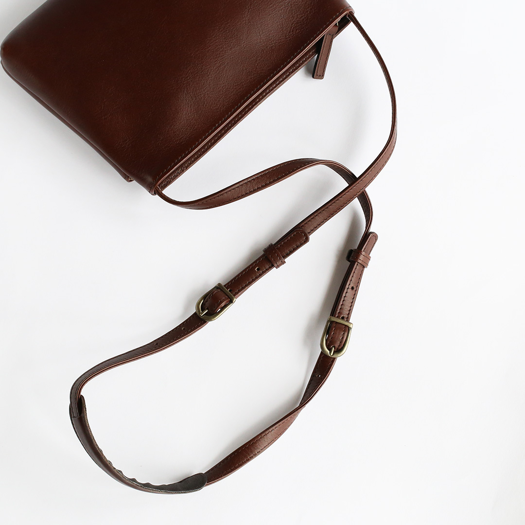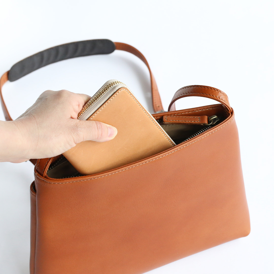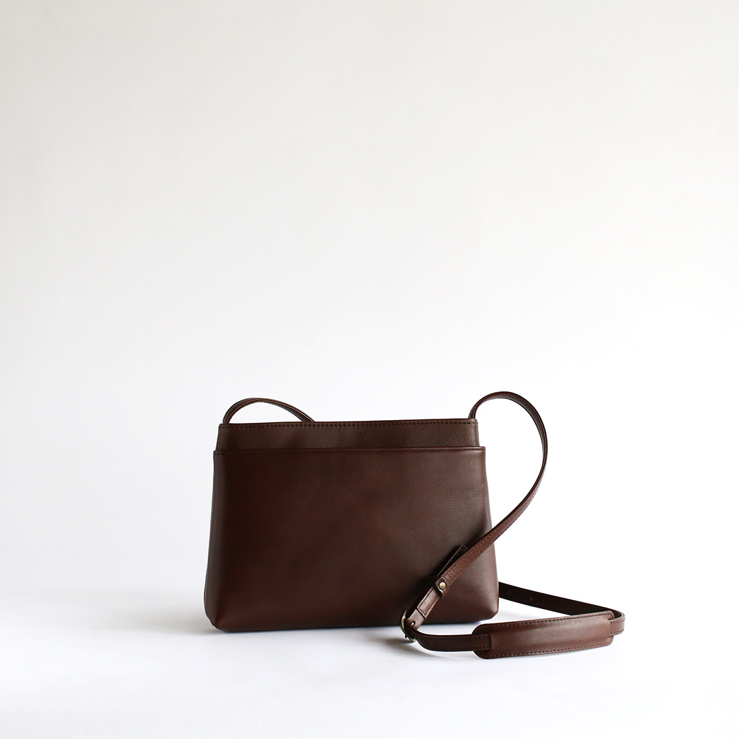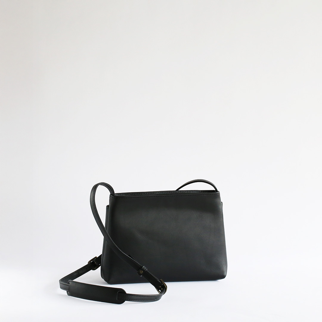色移りや水濡れに強い特性を備えた牛革で製作したレザーサコッシュです。軽量で身体にフィットするスリムなデザインなので、気軽にいつでもどこでも持ち運んでいただけます。ブラック、ネイビー、ブラウン、キャメルの4色展開です。