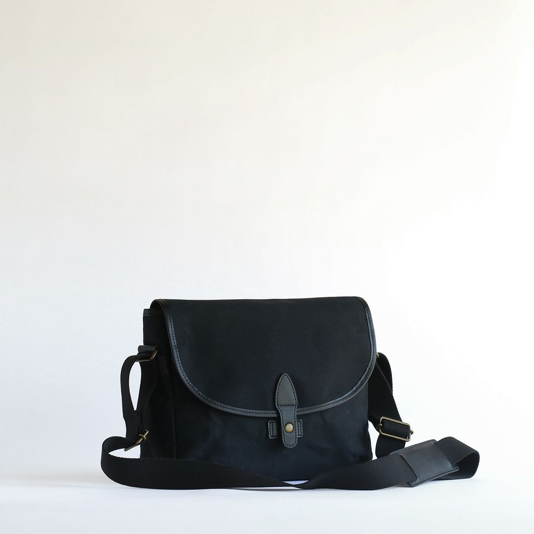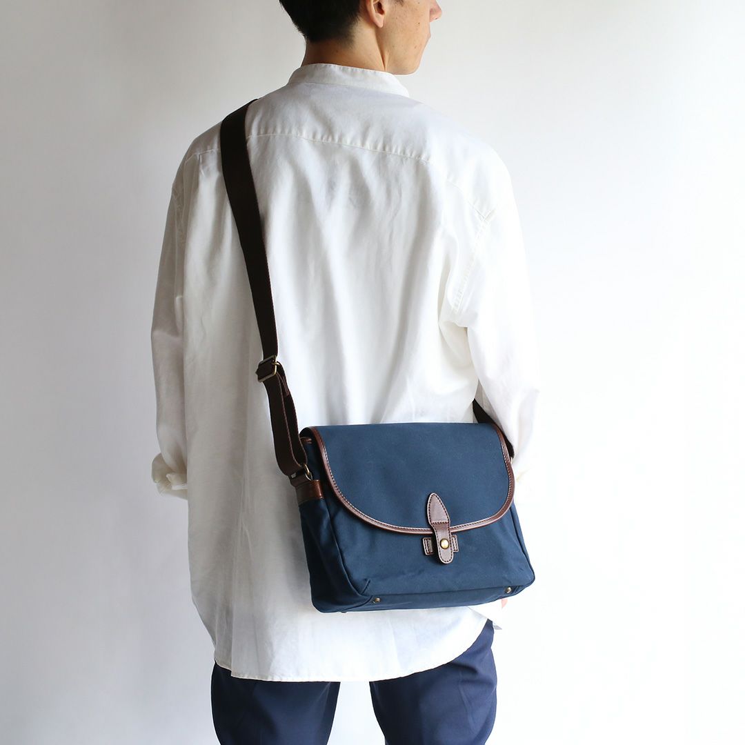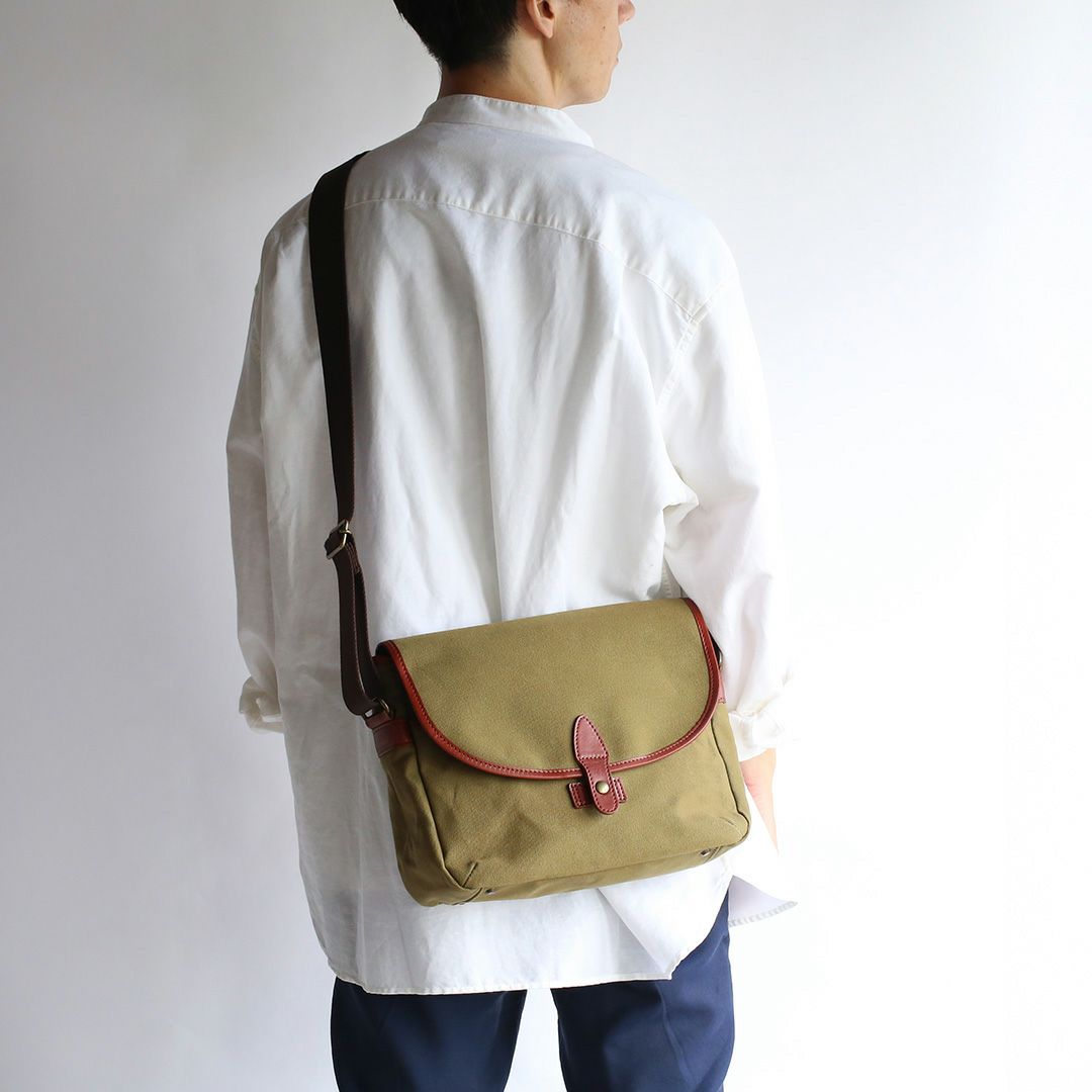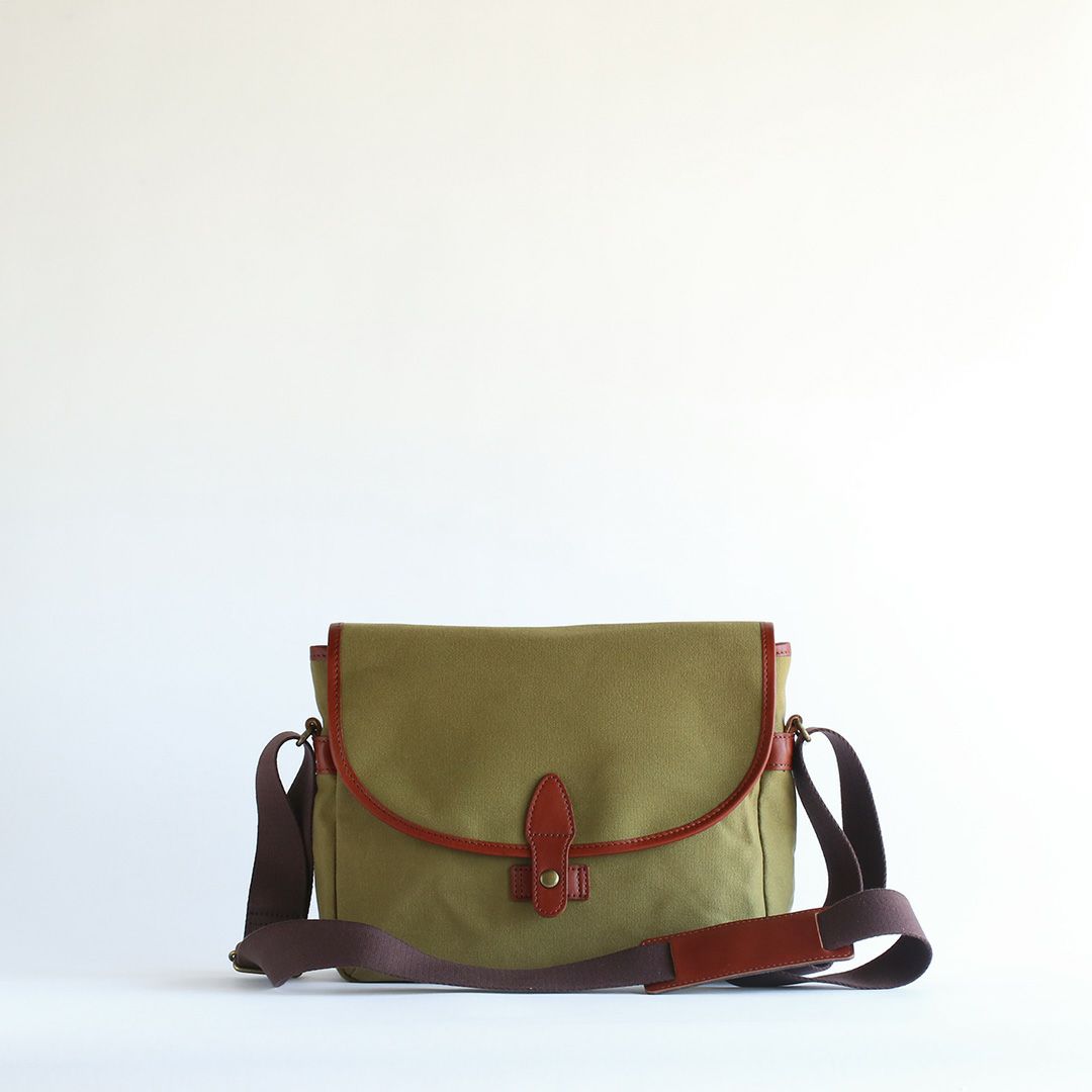 パラフィン帆布という軽くて丈夫で水をはじく素材の特徴を活かした帆布と革のショルダーバッグ。落ち着いた色合いと素材感からクラシックなムードが漂います。 しっかりとした厚みとハリのある帆布は使うほどに柔らかくなり、自然と馴染んでいきます。内外に充実したポケットを多数配置。小物類をすっきり収納でき、街歩きからご旅行、カメラバッグとしても便利なサイズ感です。