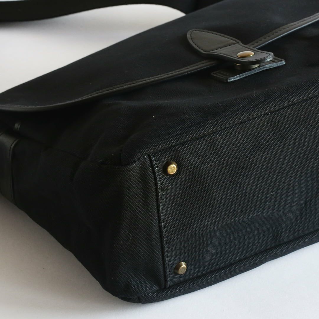 帆布のショルダーバッグには珍しく、底部分には底鋲を4点打ち込んでいます。重い荷物を入れたバッグを降ろすときも安心して置くことができます。