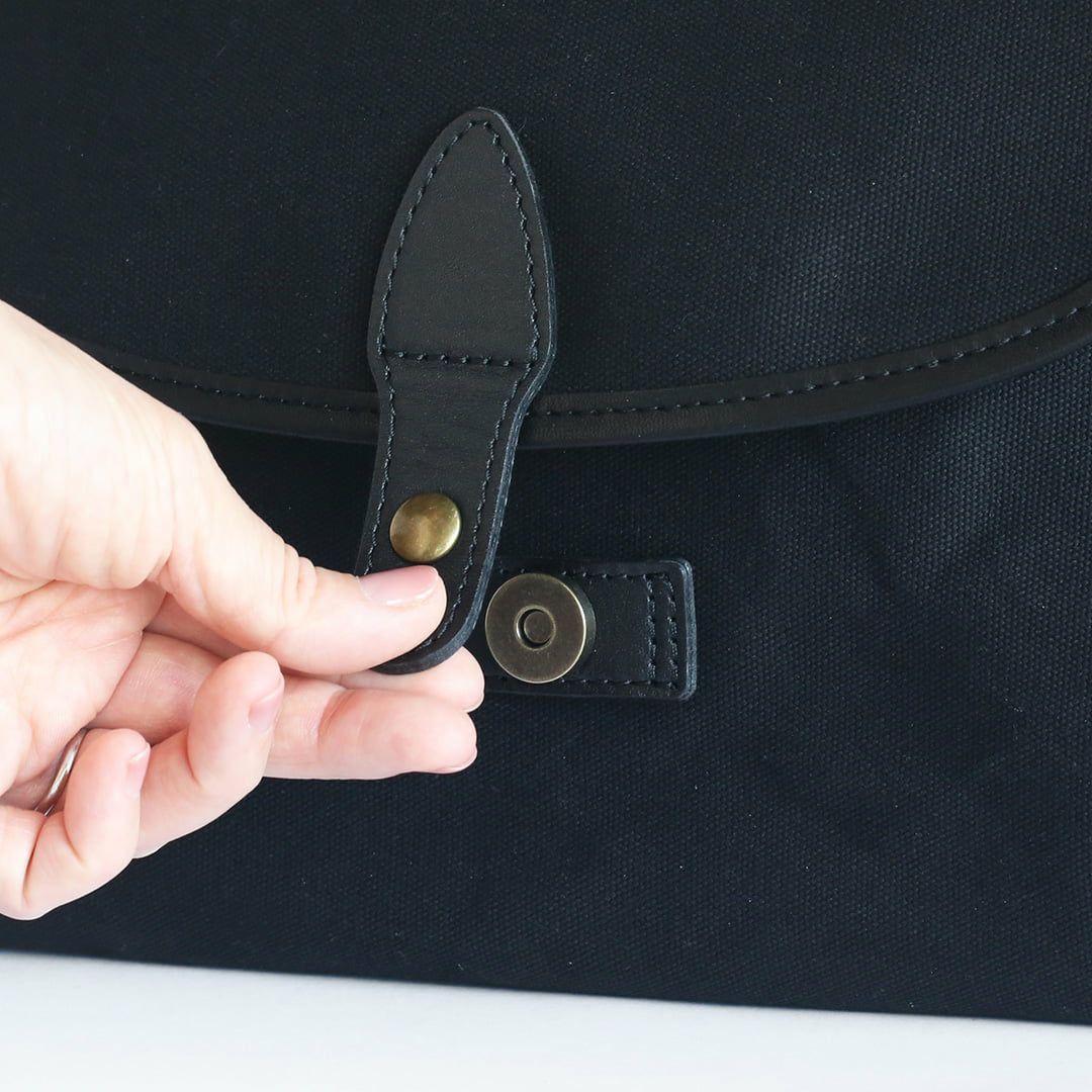 フラップの開閉はマグネットホック仕様で、片手でもスムーズに留め外しができます。