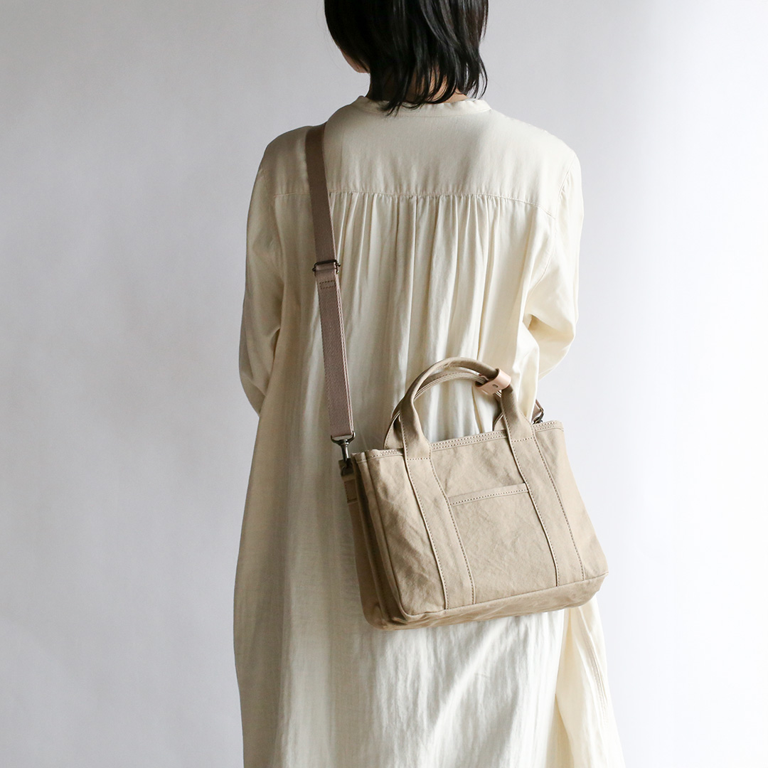 しっかりとした質感は使い込むほどに柔らかく馴染んで、くたっと感も愛らしくなっていきます。ポケットが充実しており、持ち歩く荷物を整理して見やすく収めることができるので、どこへ行くにも快適に使えます。