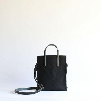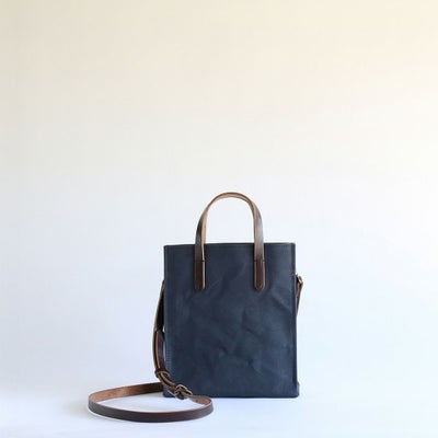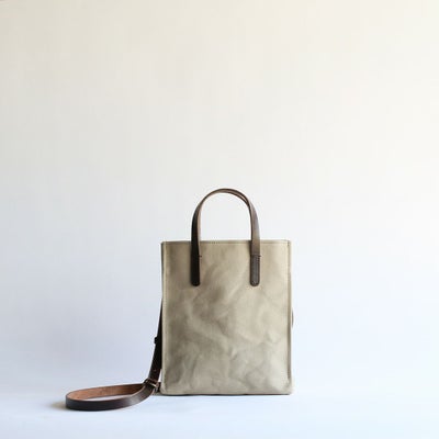 撥水加工を施した6号帆布でつくったシカクイトートをモチーフに、縦型のミニショルダーバッグをつくりました。帆布生地のナチュラルな雰囲気に革の上質感が加わることで、上品なショルダーバッグに仕上がっています。ショルダーベルトを外すと手さげスタイルとしても楽しめるミニトートに早変わり。日常使いにはメインバッグとして、ちょっとした外出にはサブバッグとして、毎日の暮らしにそっと寄り添ってくれる「いつもの鞄」に。