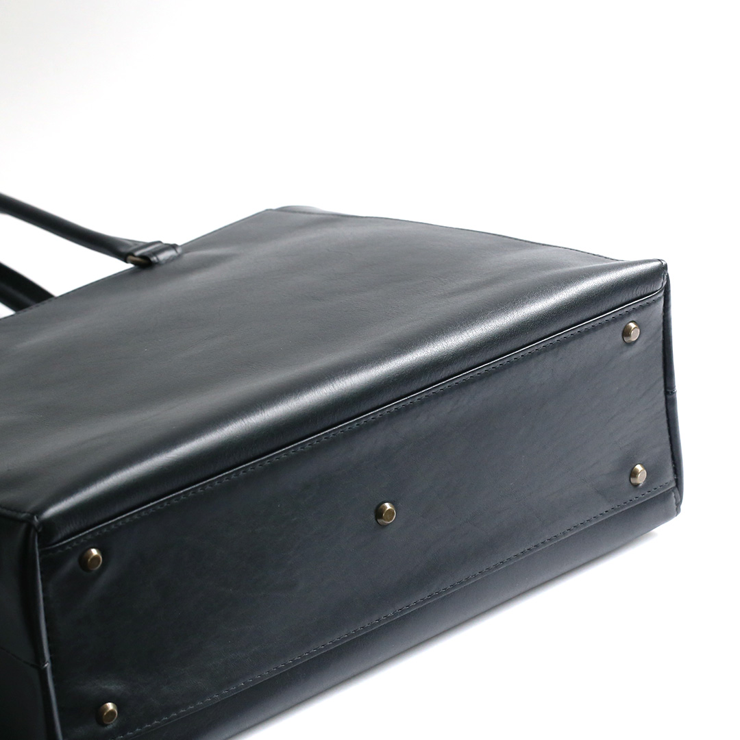 バッグの底こそ見えないところですが、芯材を入れて補強をおこない、底鋲を5点打ち込んでいます。安心してバッグを手から降ろせるのは、陰なら支えている鋲たちがあってこそ。