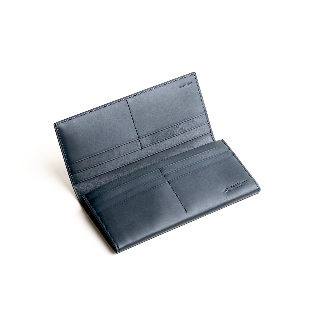 紙幣を折らずに収納でき、大きく開くことでカード収納も一目瞭然。縫製や厚み、革の重なりを細かく整えながら余計な要素を取り除き、Limenが大切にする静かな美しさを添えながら、持つ人の所作を自然に美しく見せてくれる長財布に仕上げました。