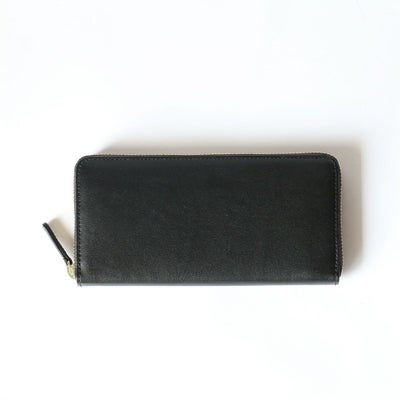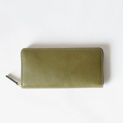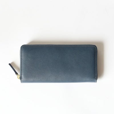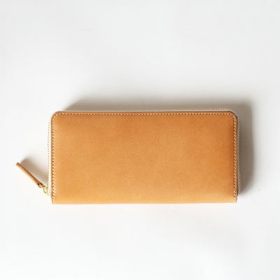 裁断・縫製まですべての工程を日本国内で一貫製造した、ヌメ革ラウンドウォレットです。革の自然な風合いを生かした製法でつくられているため、ひとつひとつに個性があります。