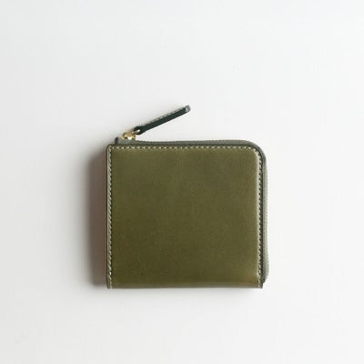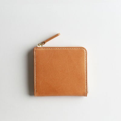 裁断・縫製まですべての工程を日本国内で一貫製造した、ヌメ革のLファスナータイプのミニウォレットです。