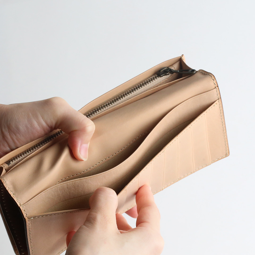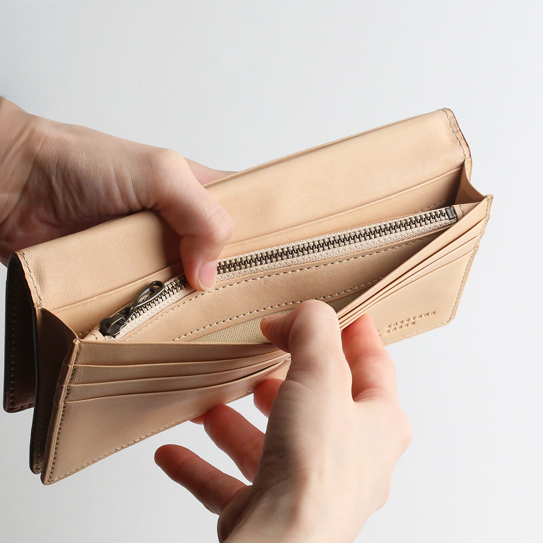 お札入れの真ん中にはファスナー付きの小銭入れ。その小銭入れを仕切りとして、隣にお札を入れるスペースが2部屋あります。片方はレシート入れとして使ったり、お札の種類ごとに分けて使ったりと使う人にあわせられる自由さが良いところです。
