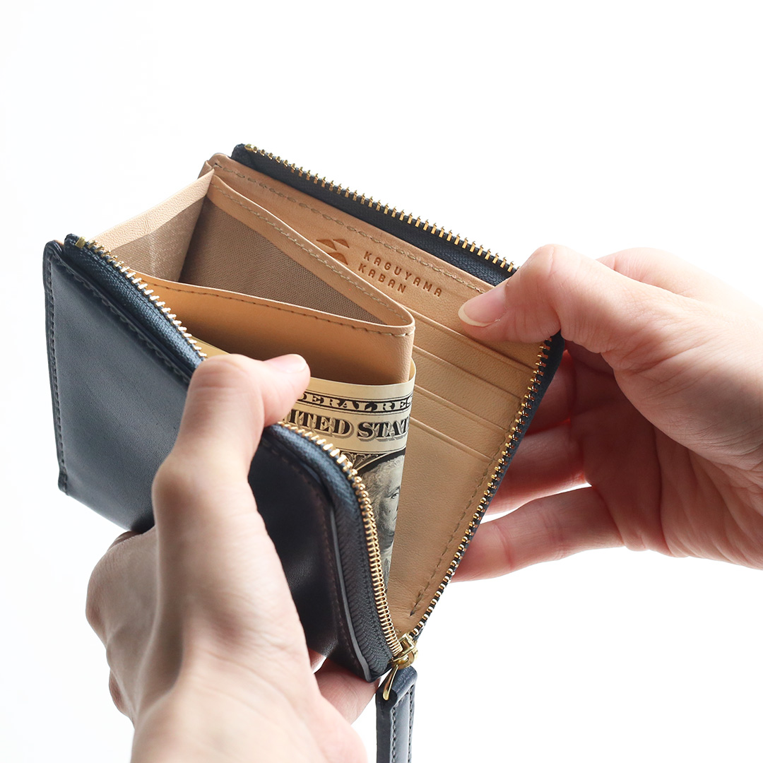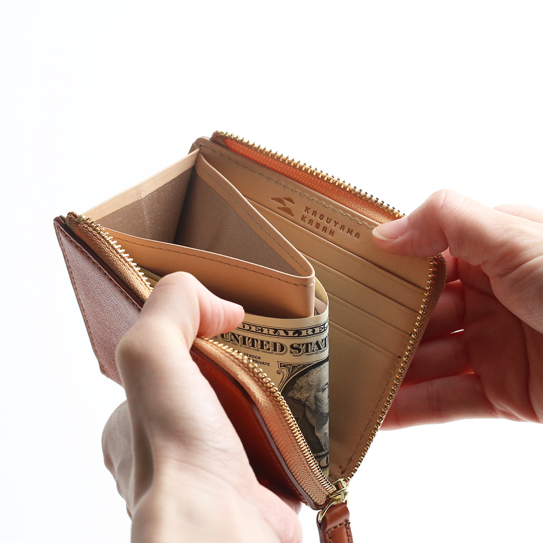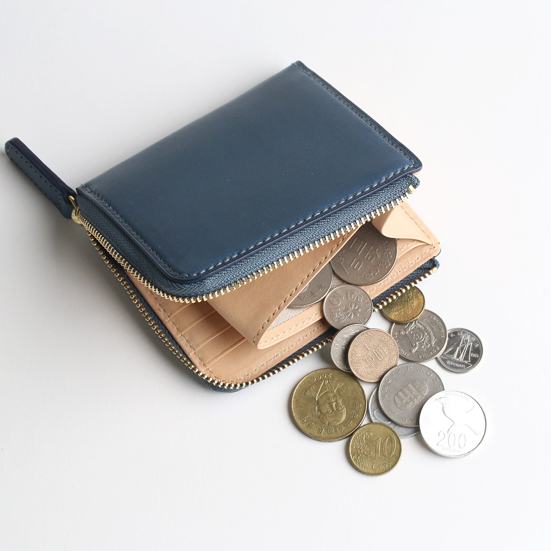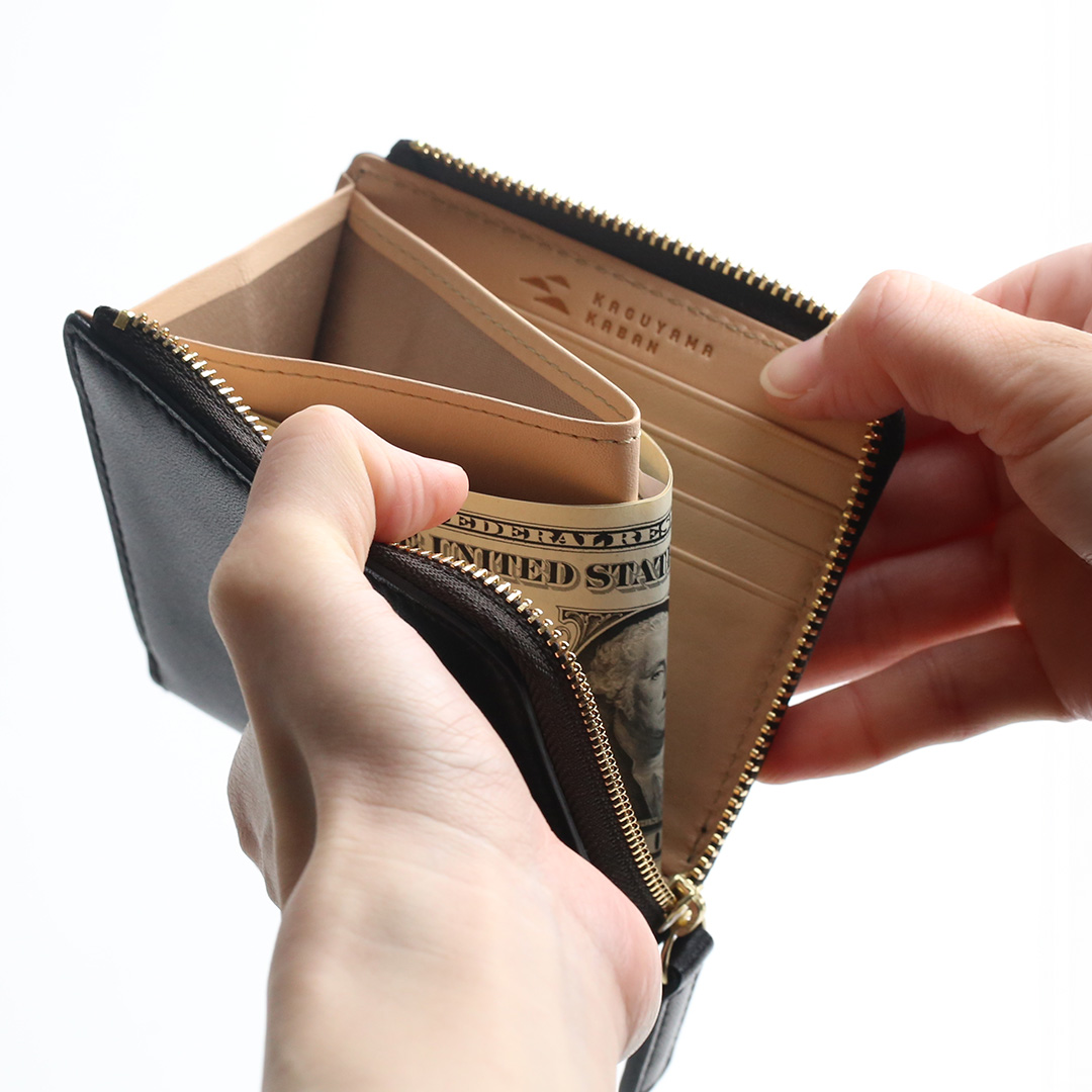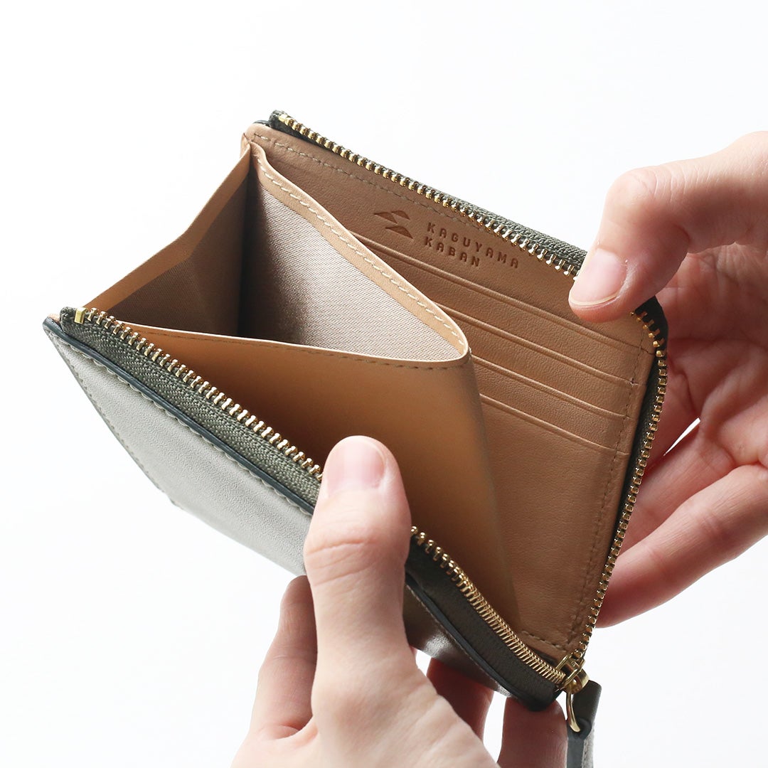 Lファスナーのお財布は収納が大きく開き、中が見やすく取り出しやすいのが特長です。中心には大きなマチ付きのコイン収納を備え、お札を券種ごとに管理したい場合には仕切り代わりにもなります。 また仕切りを囲うように重ねて収納すれば、お札を折らずに収納することもできます。