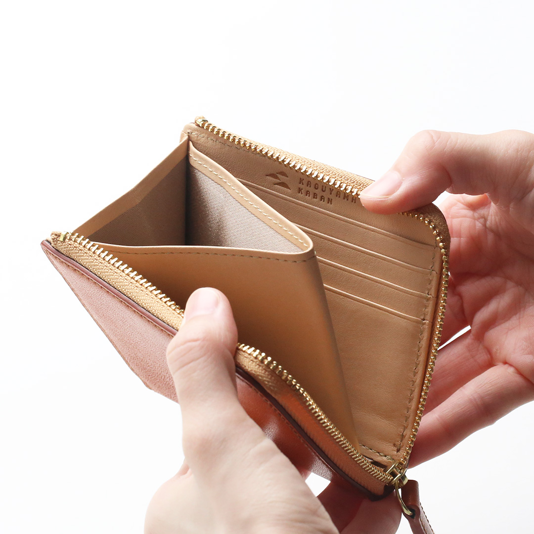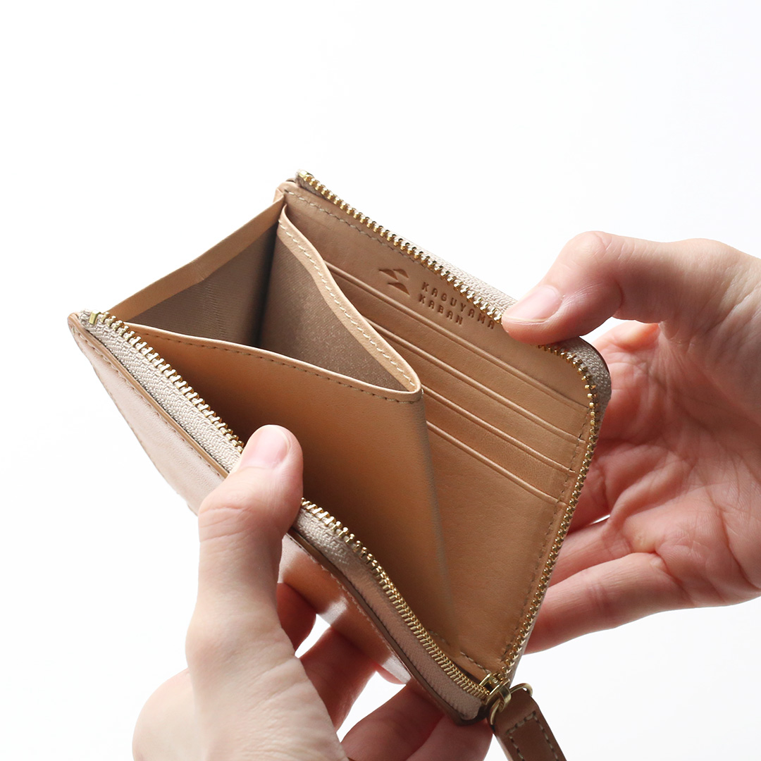 栃木レザーの魅力を詰め込んで裁断・縫製まですべての工程を日本国内で一貫製造した、ヌメ革のLファスナータイプのミニウォレットです。