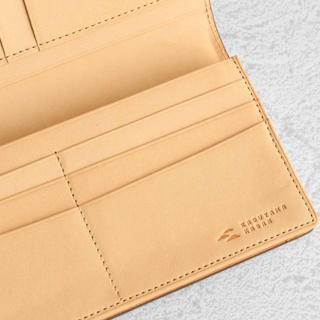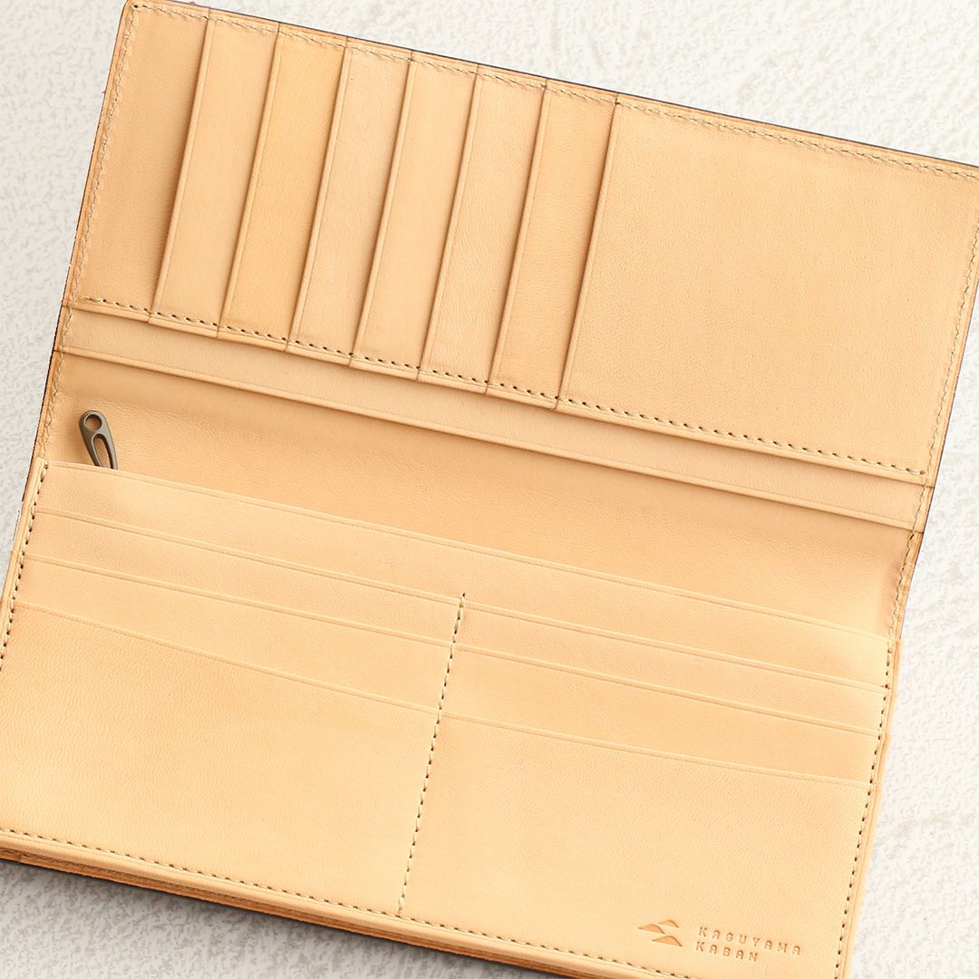 内装には薄く漉いても破れにくく、独特の柔らかさとしなやかな耐久性を持ち合わせた「名品」と呼ぶにふさわしいヌメ革を贅沢に使用。この内装の革の「大人しさ」と外の革の「猛々しさ」を一挙に味わえるところがこのシリーズの醍醐味です。さらにヌメ革のもうひとつの醍醐味である「経年変化」。写真の上側は革が育っているまさにその途中。使用頻度など、どのように使っていくかによって様々な表情に変わります。その成長をぜひお手元でお楽しみください。