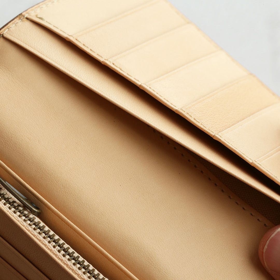 外にファスナーが付いていない分、ラウンド型の長財布よりスマートです。でも、収納量を削減したわけではありません。カードは13枚分収納できますので、使用頻度の高い1軍カードはもちろん、もうすぐ2軍に上がるというような3軍カードも収納できます。