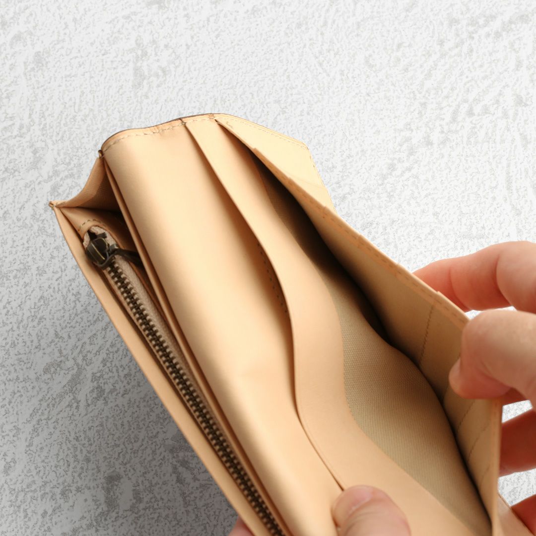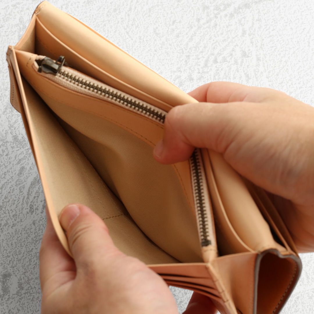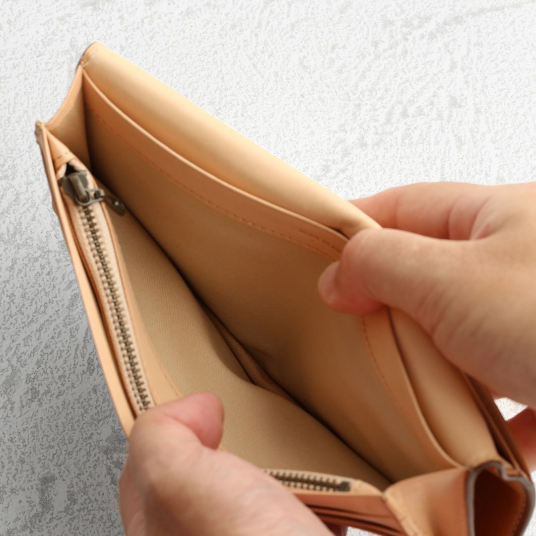 お札入れの真ん中にはファスナー付きの小銭入れ。その小銭入れを仕切りとして、隣にお札を入れるスペースが2部屋あります。片方はレシート入れとして使ったり、お札の種類ごとに分けて使ったりと使う人にあわせられる自由さが良いところです。