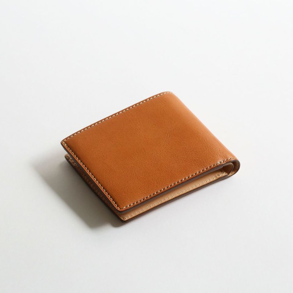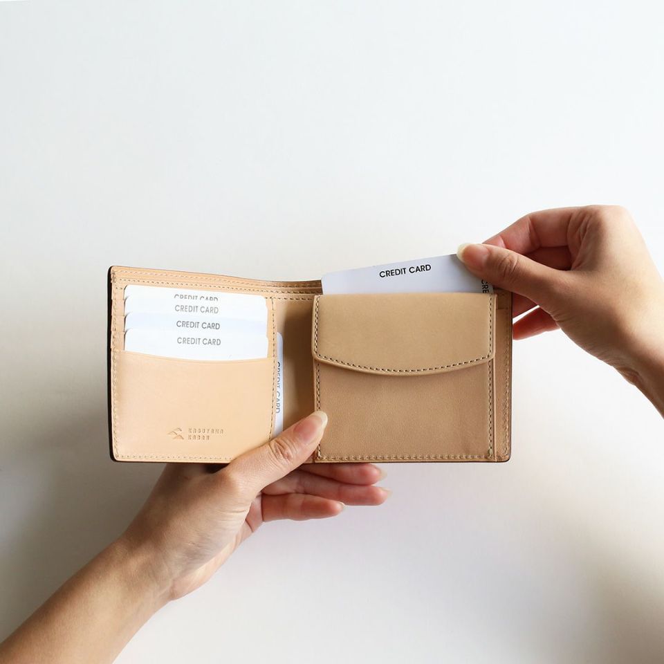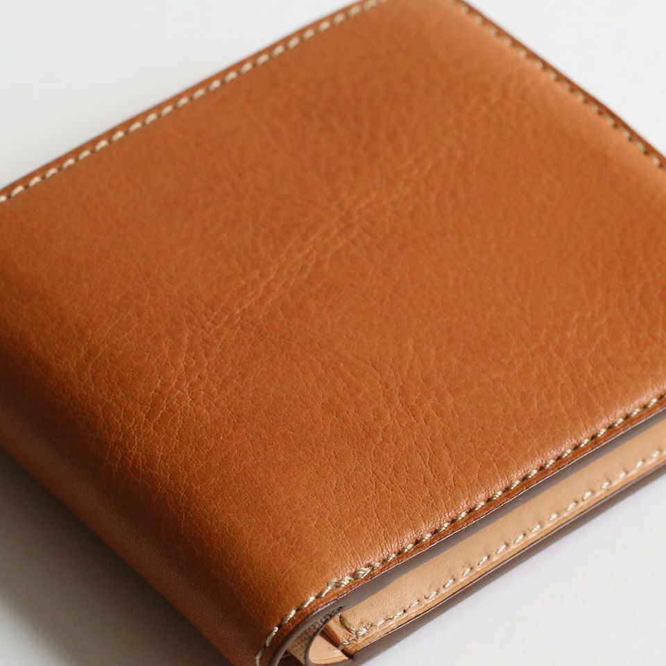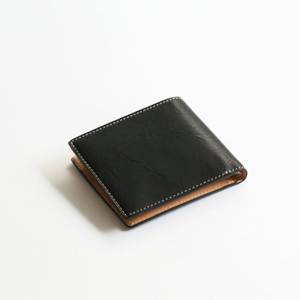 お札入れの部分は二層式。お札の種類を分けて使っても、レシートや領収書入れとして活用するのも良いですね。二層あれば、使いたいように使える自由があります。また、コインケースはBOX型ではなくポケット型。硬貨が入ってもある程度の膨らみは抑えられてスリムに使える、そんなところも二つ折り財布の良きところ。