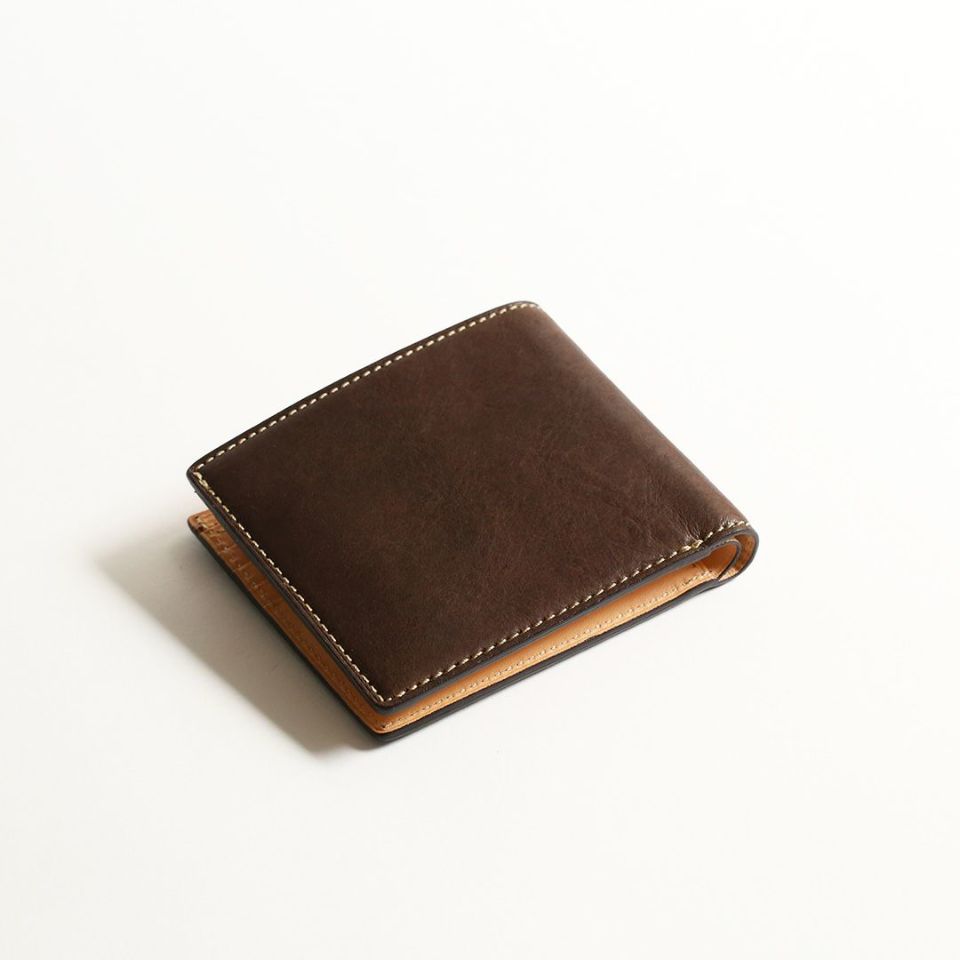 「これからもずっと現金派!」という方の強い意志にも十分応えられるほど、内装に用いているヌメ革は薄く漉いても破れにくく、独特の柔らかさとしなやかな耐久性を持ち合わせた名品です。外革は深い渋さを纏った色ですが、中を開くと景色は一変。染料を一切使わないこだわりのタンニン鞣しによって心安らぐナチュラルな色合いでまとまっており、内と外のコントラストもこのシリーズの魅力の一つです。