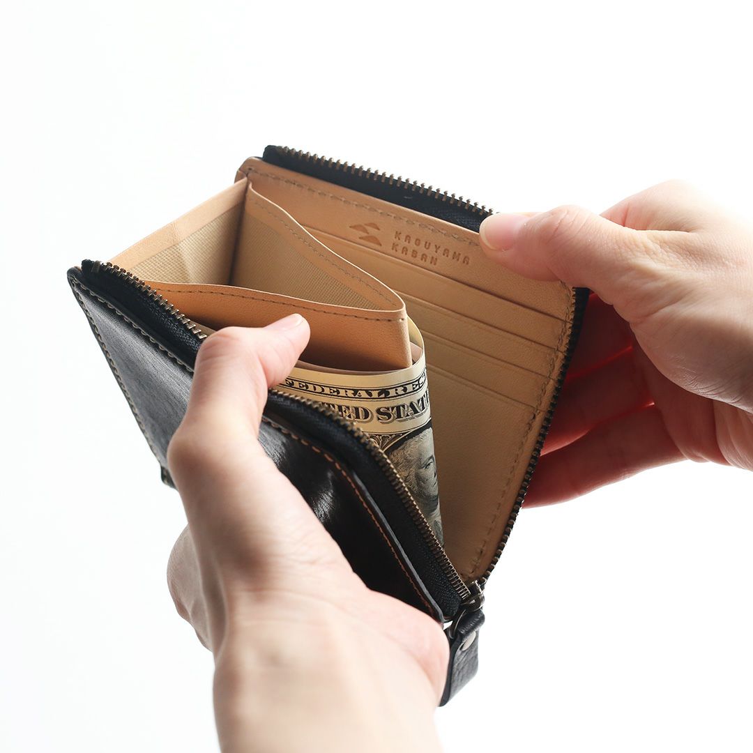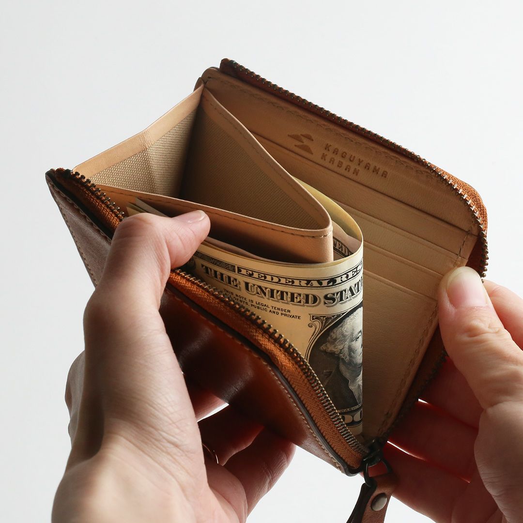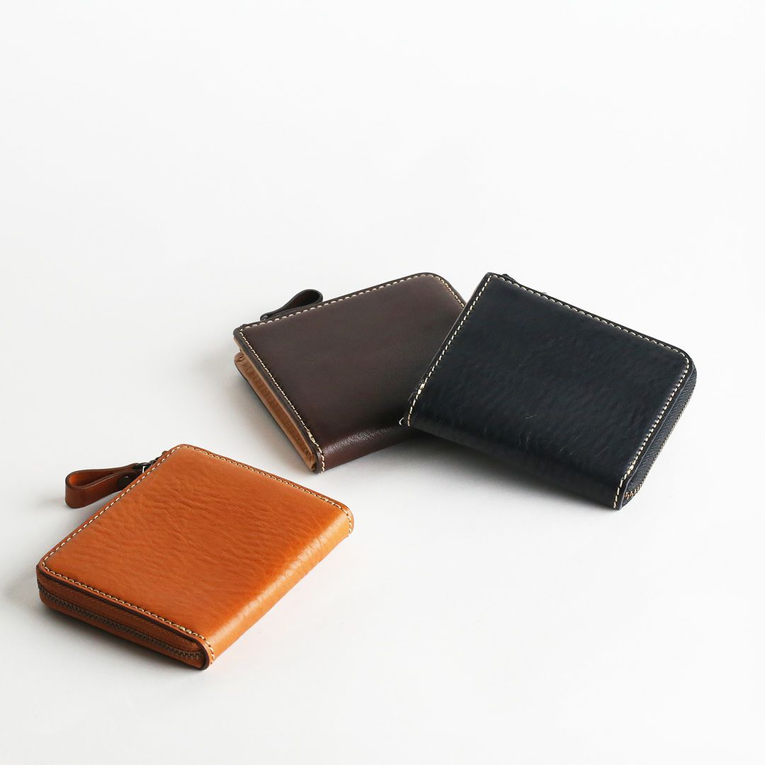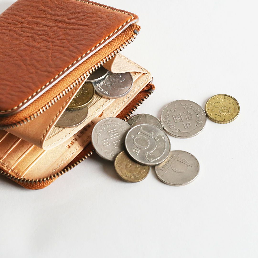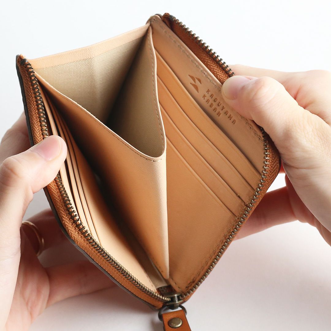 Lファスナー財布の特長の1つでもある仕切り部分のコイン収納ですが、ミニ財布のサイズだと、ループタイプの作りははコンパクトにするほどコインが取り出しにくくなることが課題でした。 香久山鞄のLファスナーは手のひらに収まるコンパクトなサイズと、使い勝手の良さ、それぞれが共存できるマチ仕立てにいたしました。 本製品はオイルバケッタシリーズのエントリーモデルとなるべく開発されました。初めて手にしていただく製品だからこそ、手間を惜しまず、しっかりした作りを目指しています。