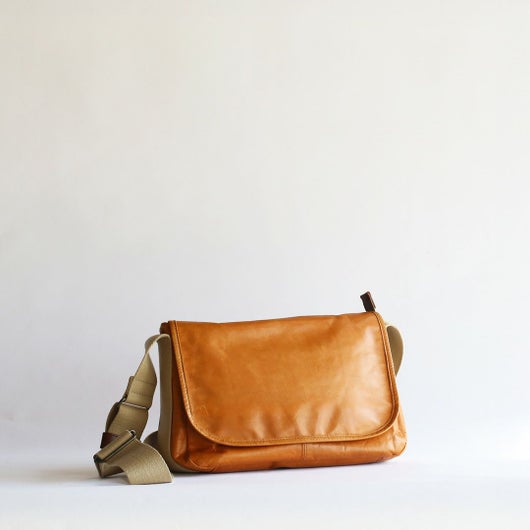 それなりの容量がありつつ、ボディバックのように前掛けもできるようなレザーバッグを探していたところ、こちらの商品を見つけました。馬革の雰囲気と、帆布の肩紐がバッグ側面を覆うように付けられたデザインがアクセントとして面白いと思い、購入しました。